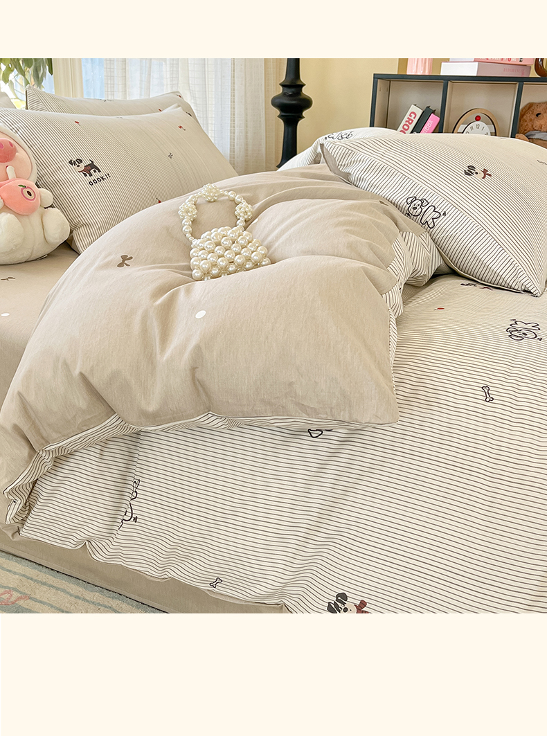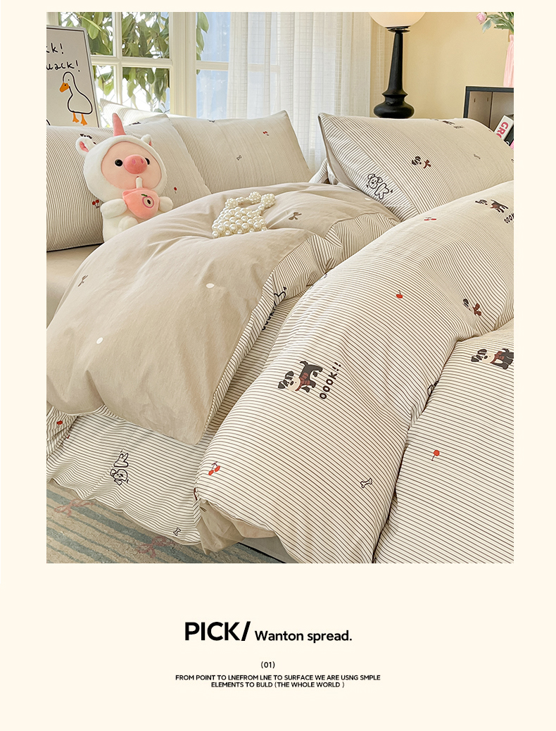 当前位置: 91家纺网 > 商品网购 > 床品套件 > 四件套 > 全棉普通四件套 > 睡美美家纺 2026新款全棉纯棉斜纹印花喷气小清新四季款学生三件套四件套 趣味萌犬