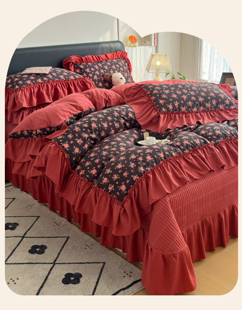 (总)锦格家纺 2025年新款全棉印花小清新花边四件套,千颂伊,繁音,月朵,紫苏