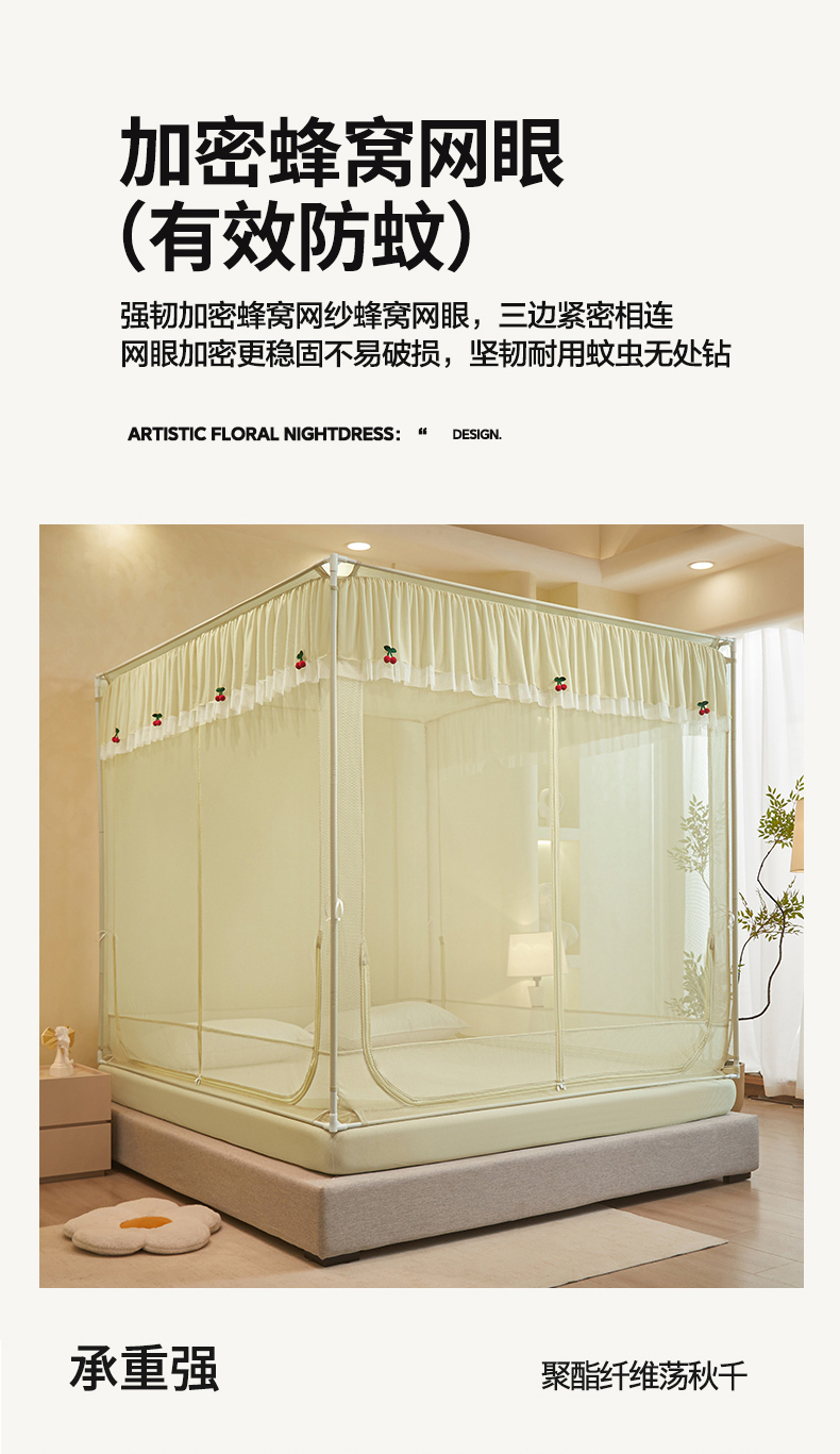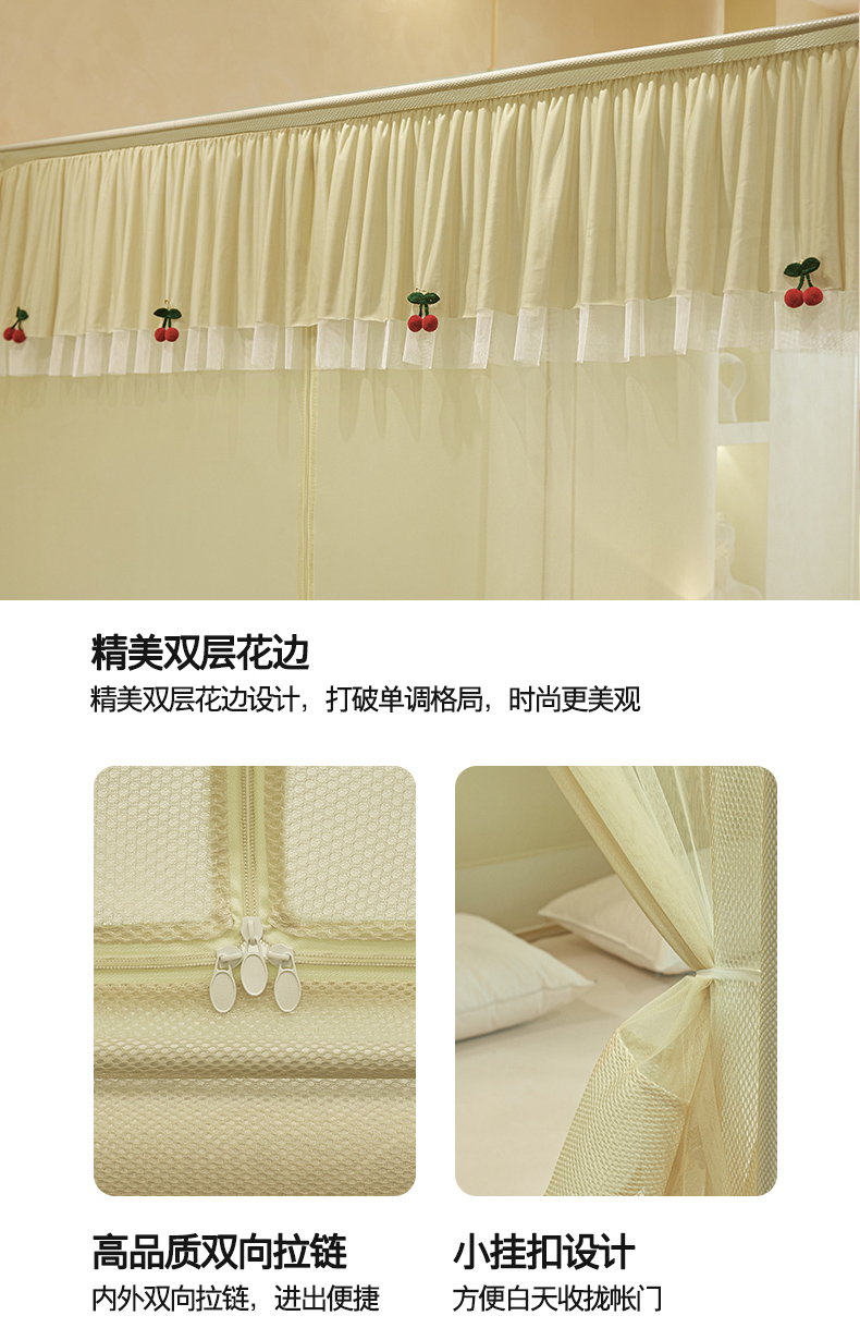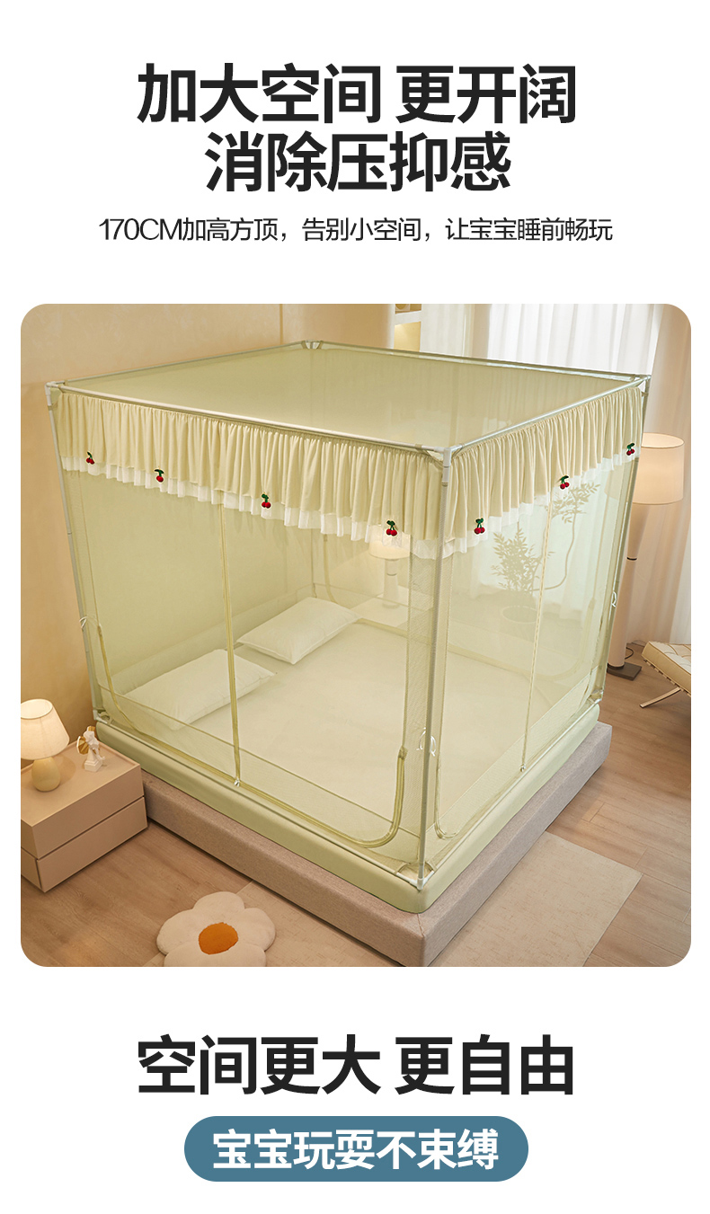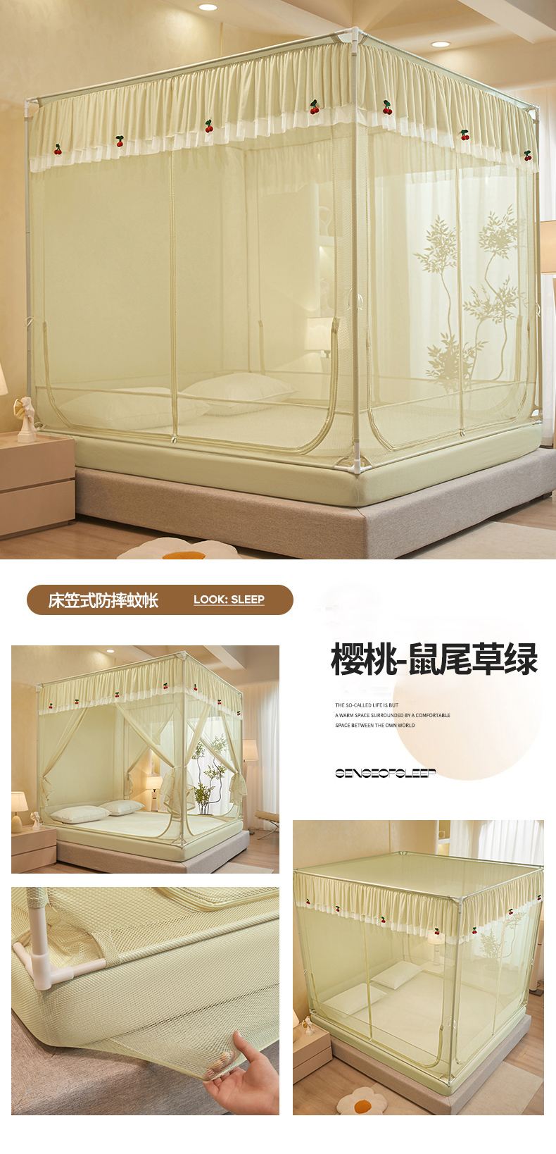 当前位置: 91家纺网 > 商品网购 > 床上用品 > 蚊帐 > 坐床式蚊帐 > 青竹苑 2026新款花边款床笠底防摔坐床蚊帐 坐床樱桃-鼠尾草绿