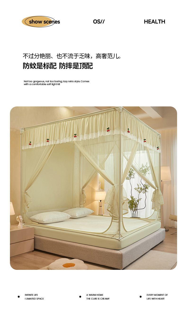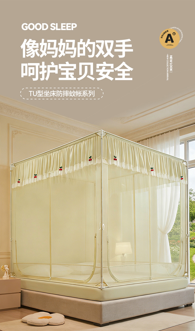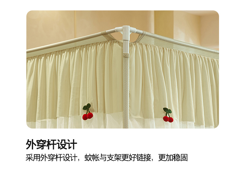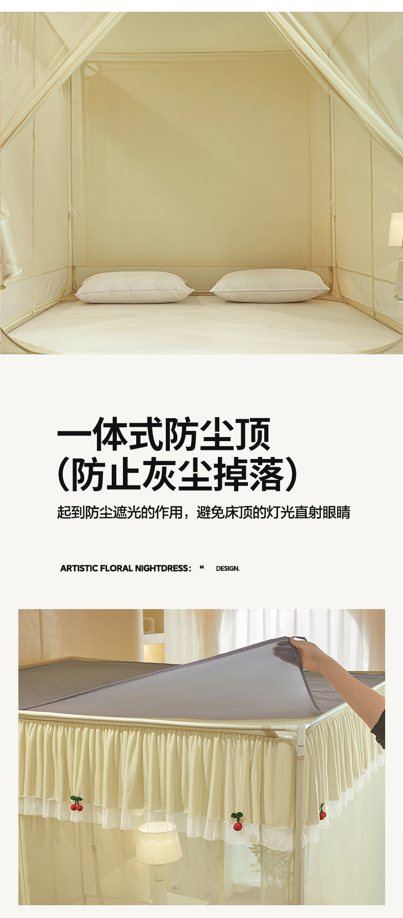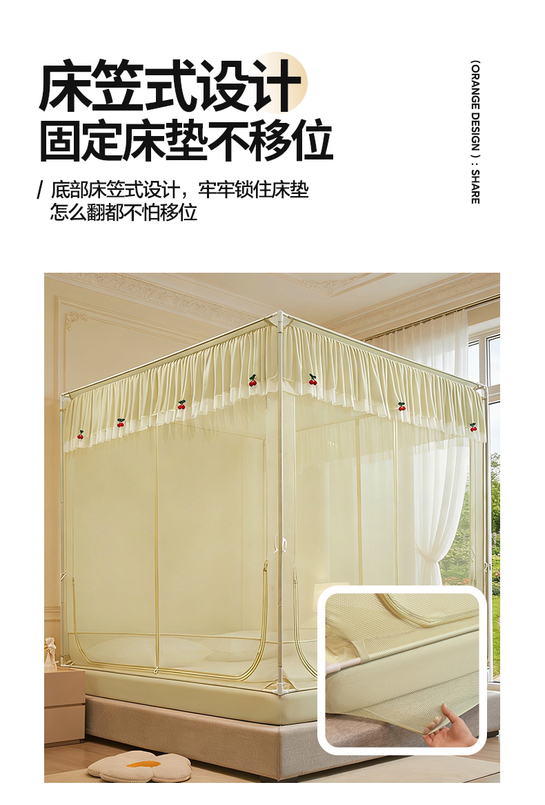 当前位置: 91家纺网 > 商品网购 > 床上用品 > 蚊帐 > 坐床式蚊帐 > 青竹苑 2026新款花边款床笠底防摔坐床蚊帐 坐床樱桃-鼠尾草绿