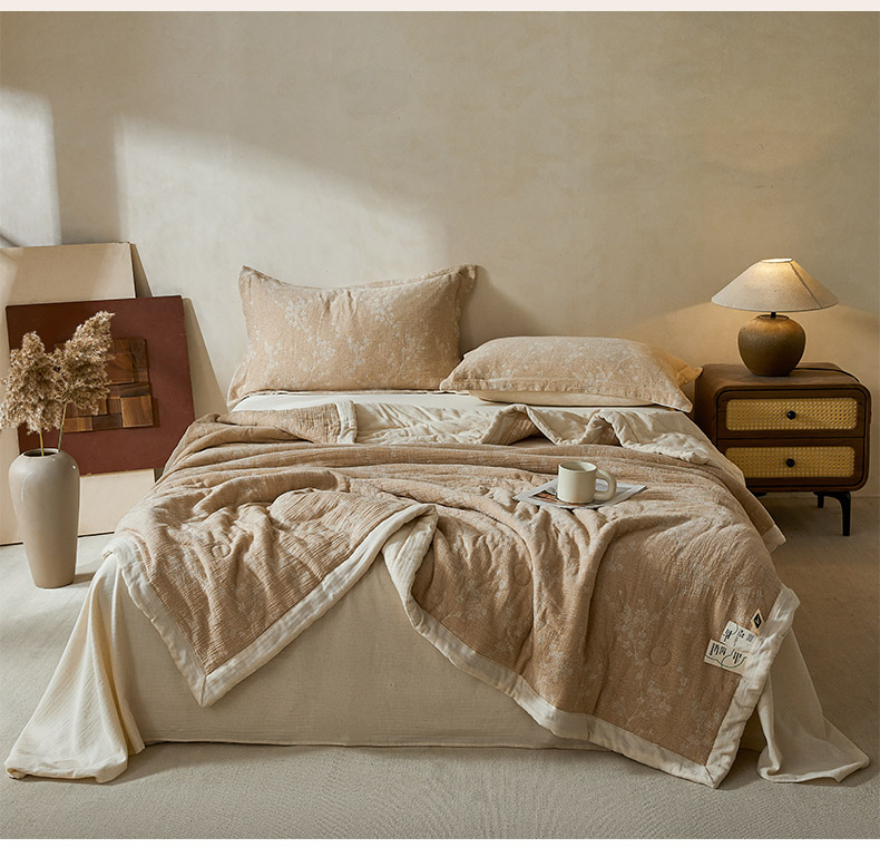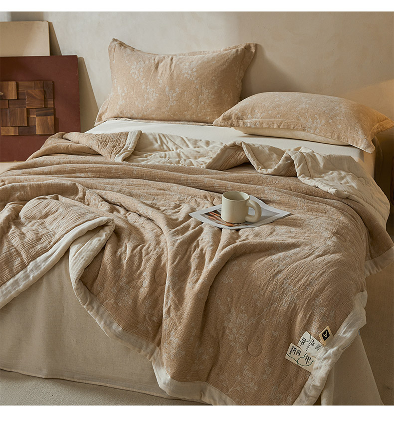 熙宴家纺 2026新款色织提花棉麻脱脂棉花夏被 被子被芯 棉麻-腊梅