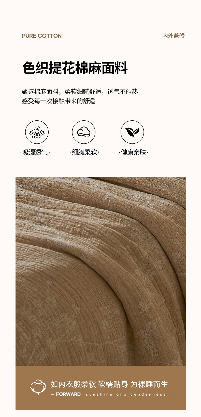 商品名称:熙宴家纺 2026新款色织提花棉麻脱脂棉花夏被 被子被芯 棉麻-腊梅