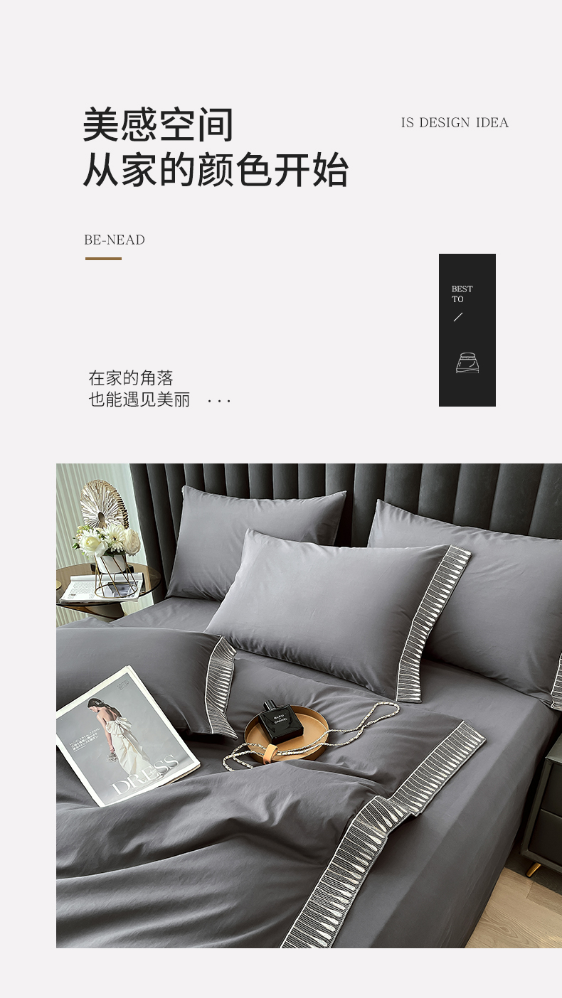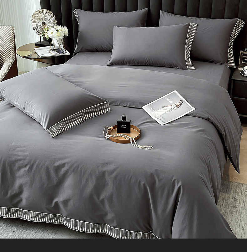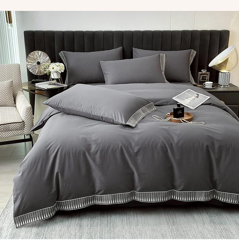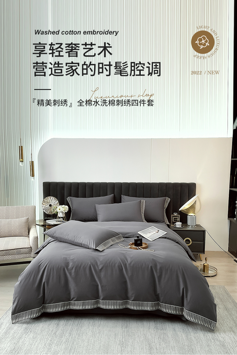 商品名称:拼社家纺 2026新款A类色织全棉水洗棉四件套纯棉四件套刺绣床上用品-黛妮卡系列 黛妮卡-水墨灰