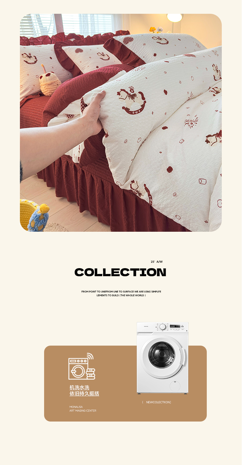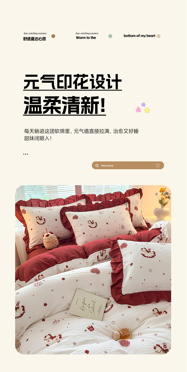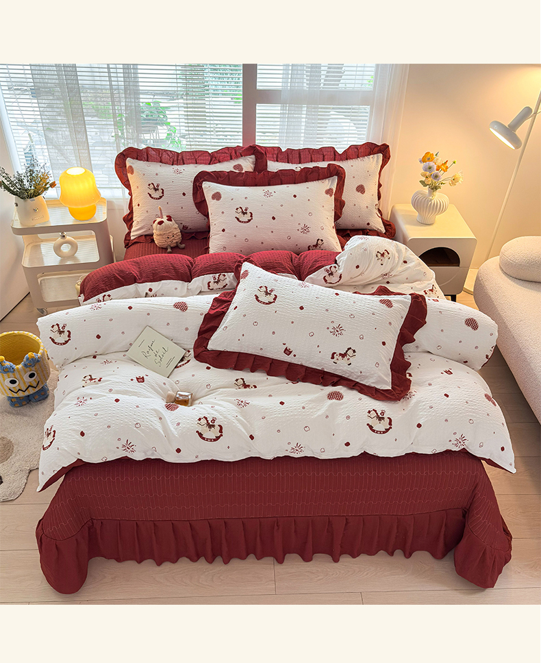商品名称:民新家纺 2026新款泡芙双层纱床盖款四件套 鸿运小马