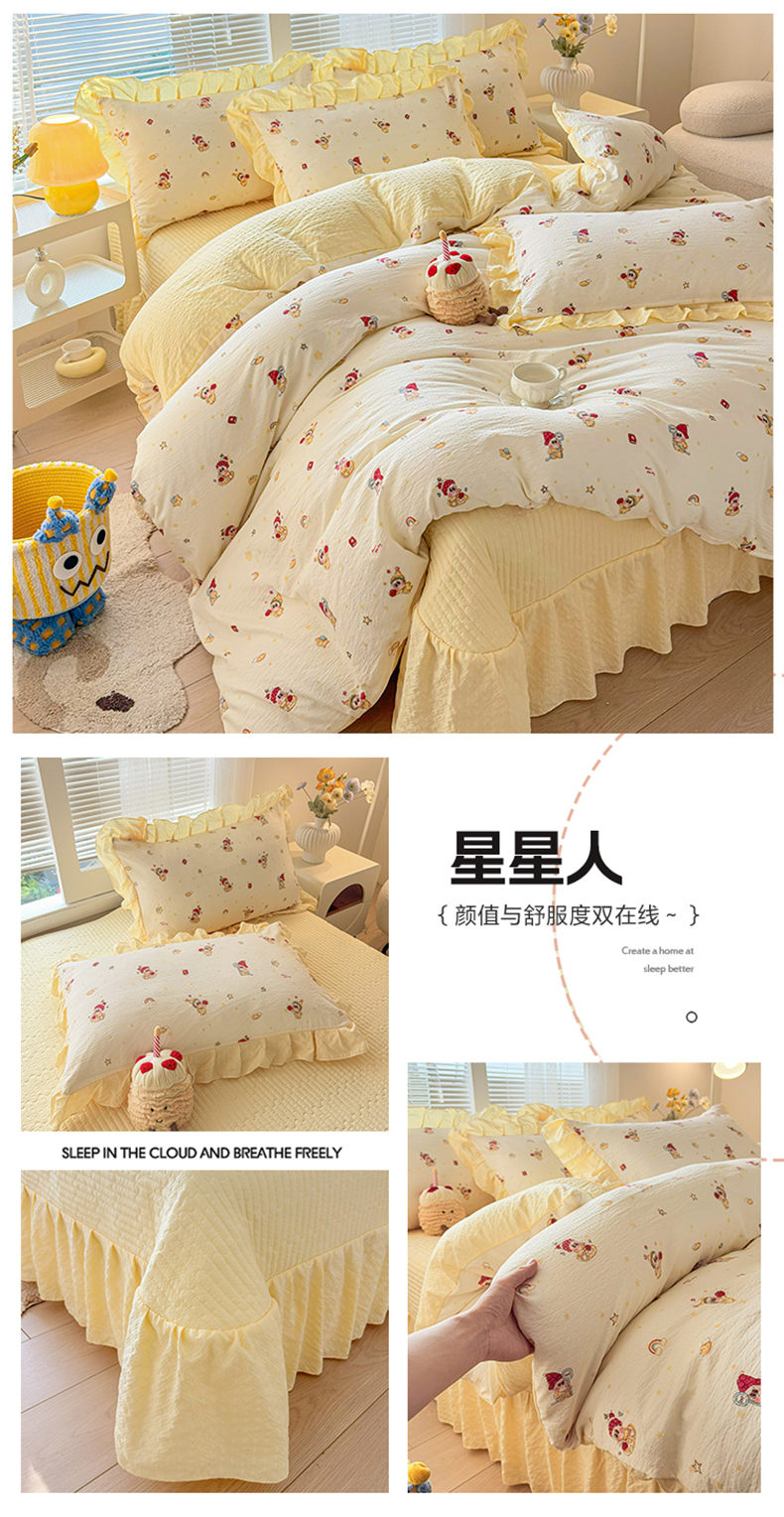 (总)民新家纺 2026新款泡芙双层纱床盖款四件套,鸿运小马,星星人,爱心小马,晨雾花园,乖乖兔,蝴蝶飞舞,蝴蝶结-灰,水彩玫瑰,小雪人-红,小雪人-蓝,心心相印,幸运星,仲夏之梦,紫梦花语,紫薇花开