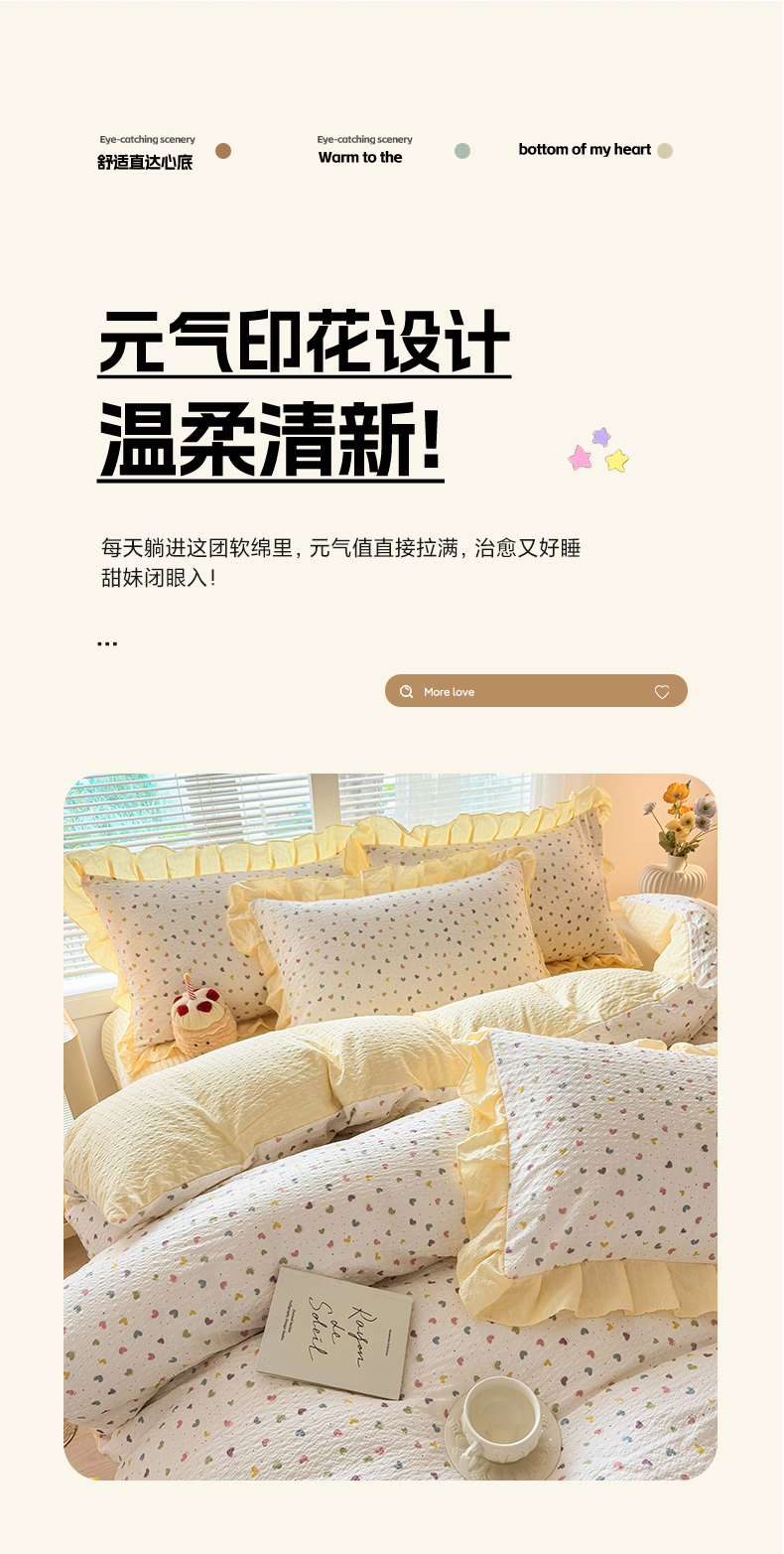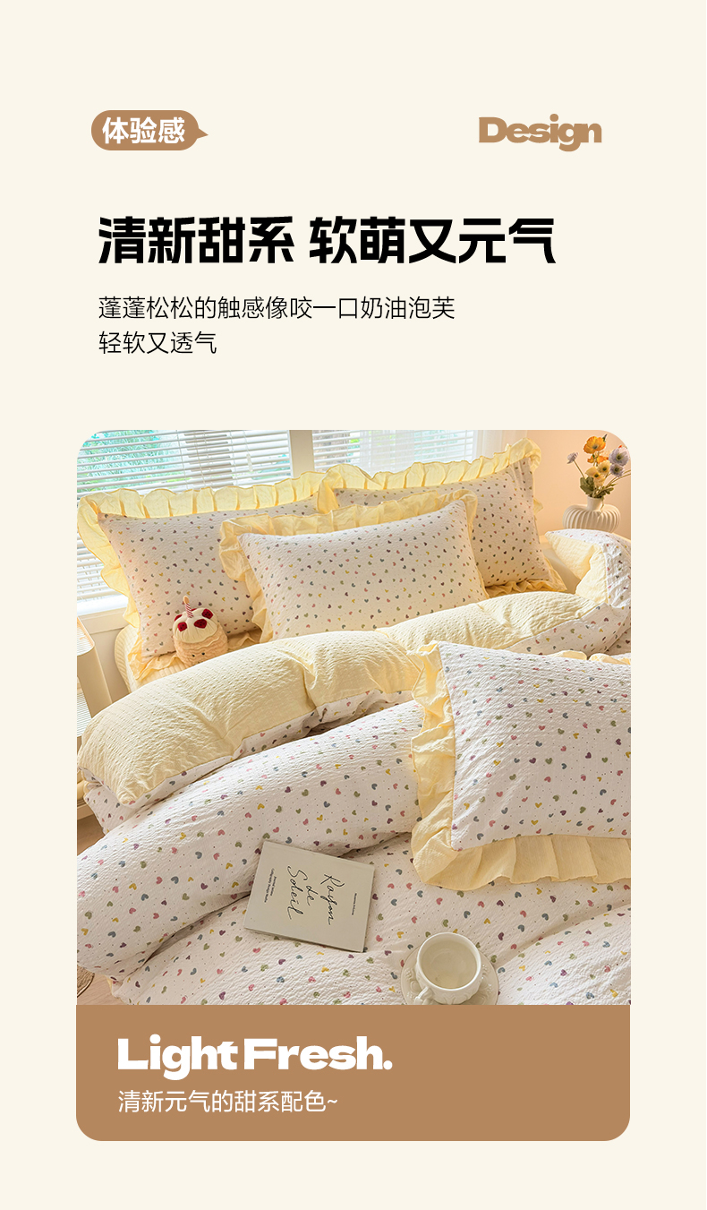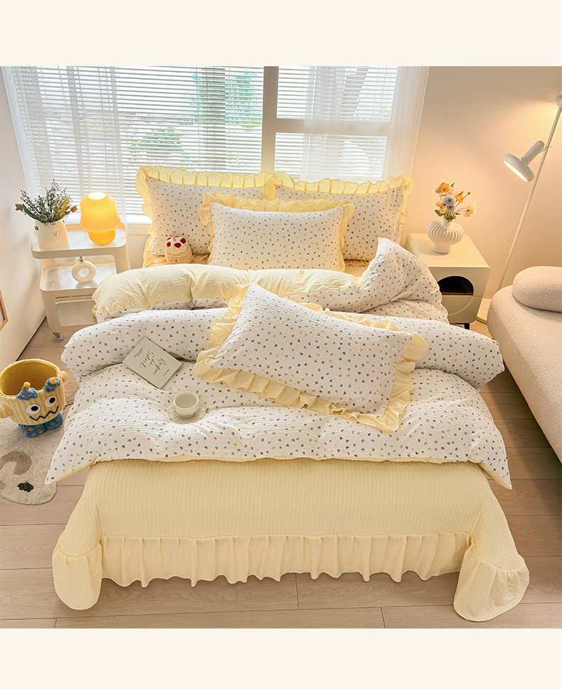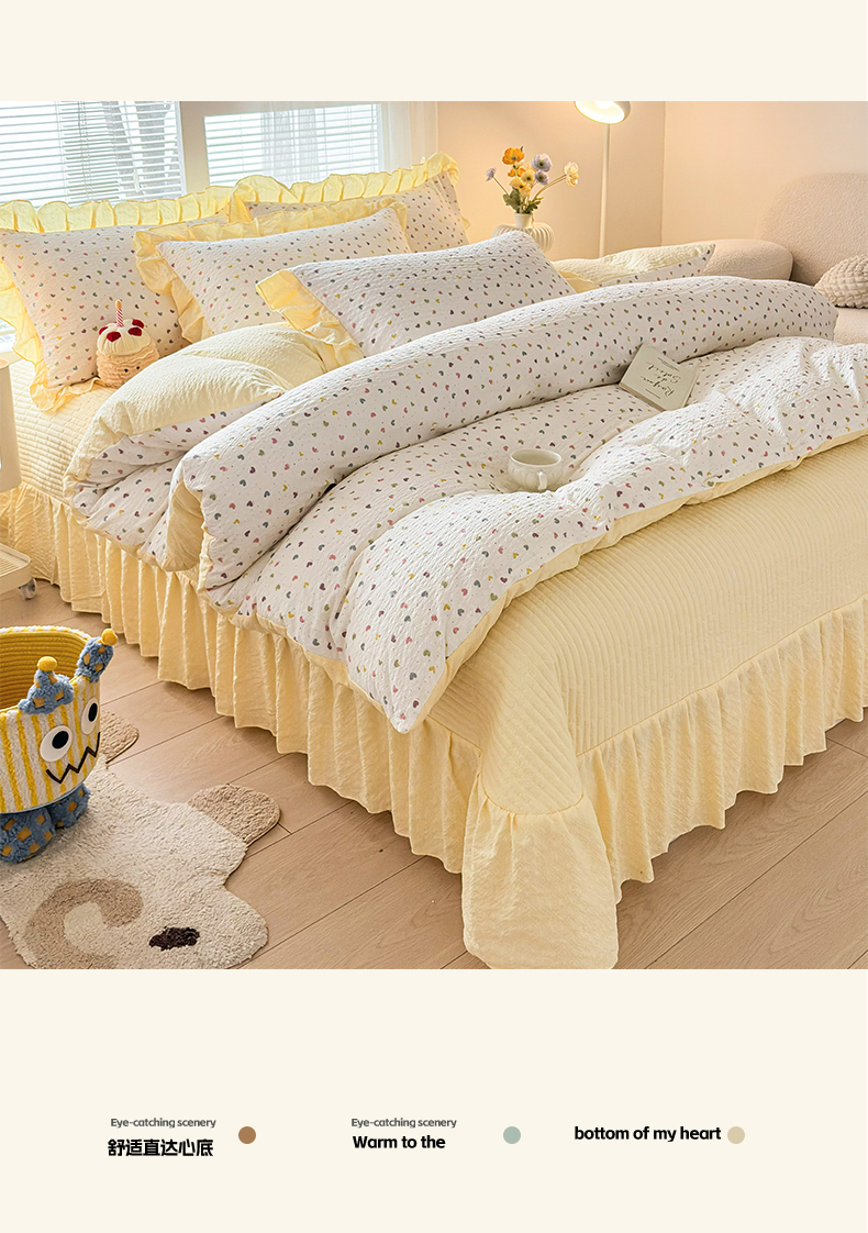 商品名称:民新家纺 2026新款泡芙双层纱床盖款四件套 心心相印