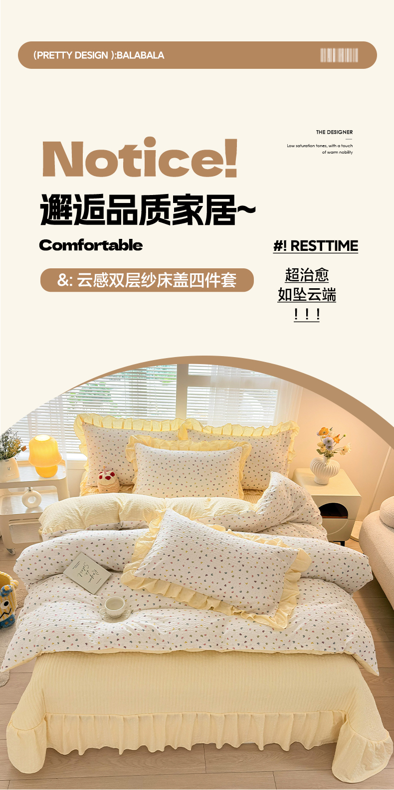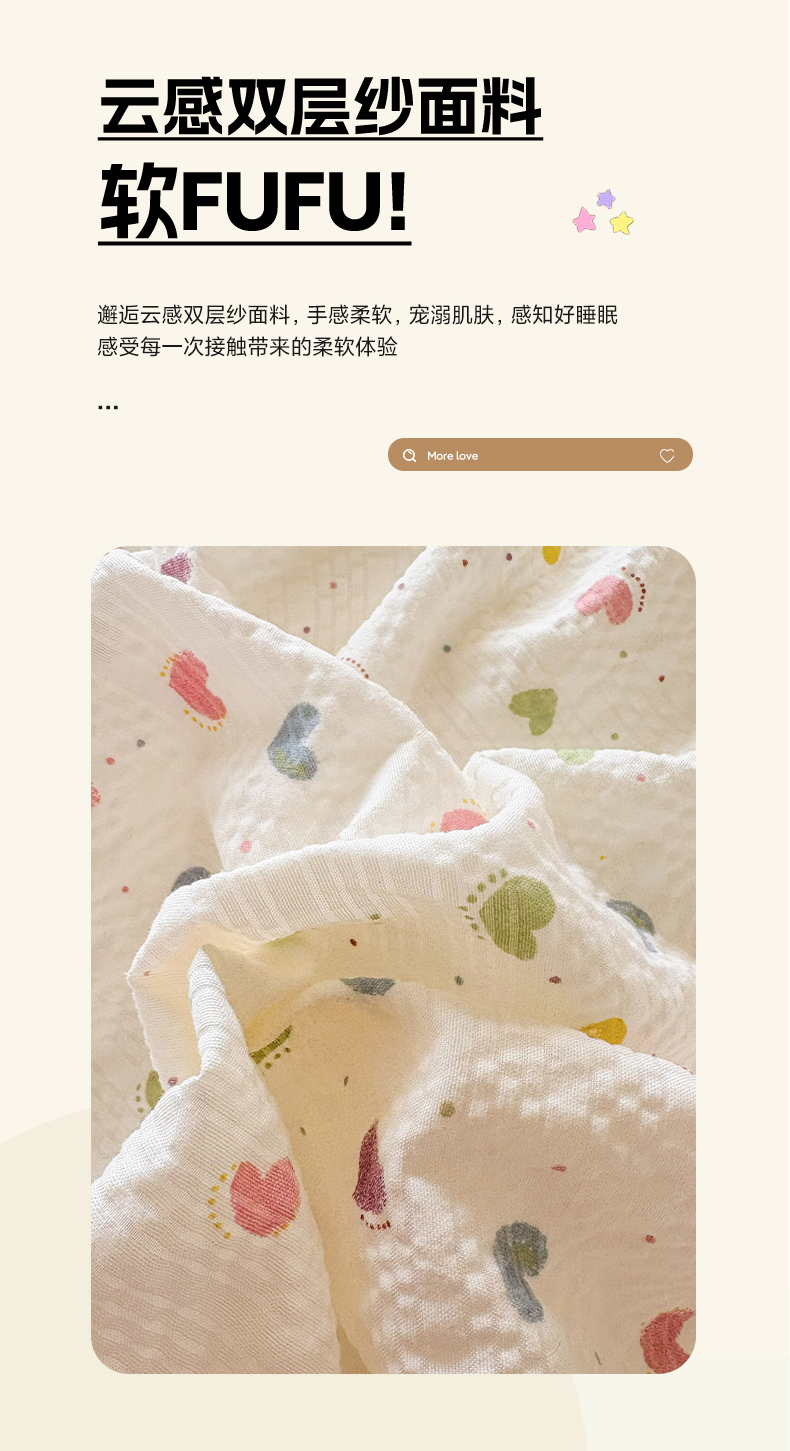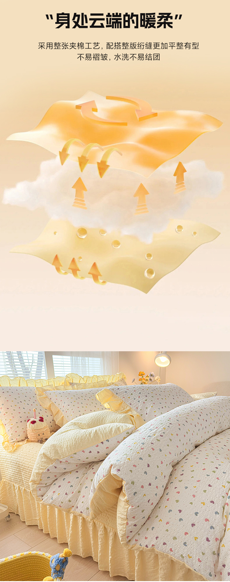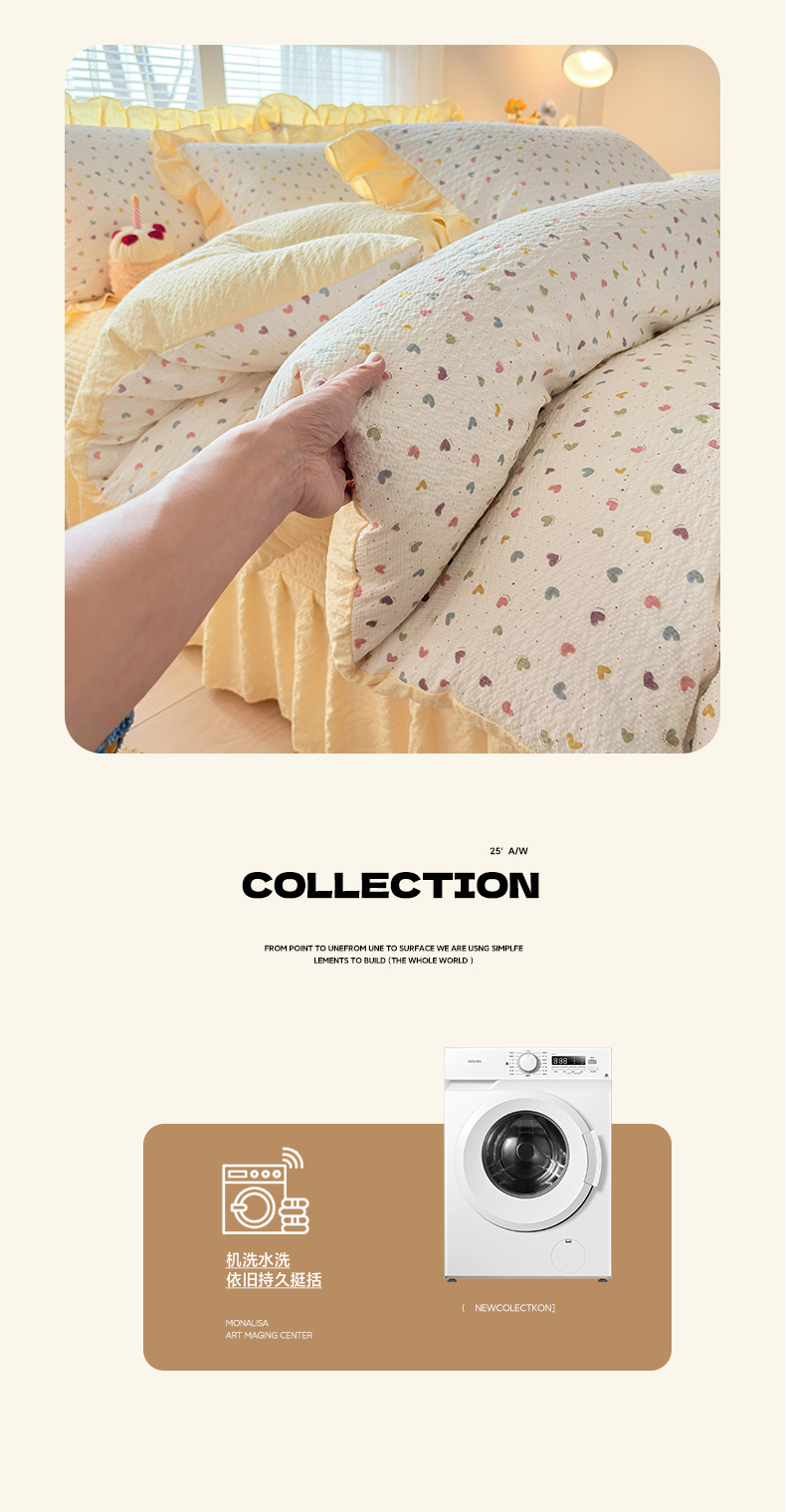 商品名称:民新家纺 2026新款泡芙双层纱床盖款四件套 心心相印