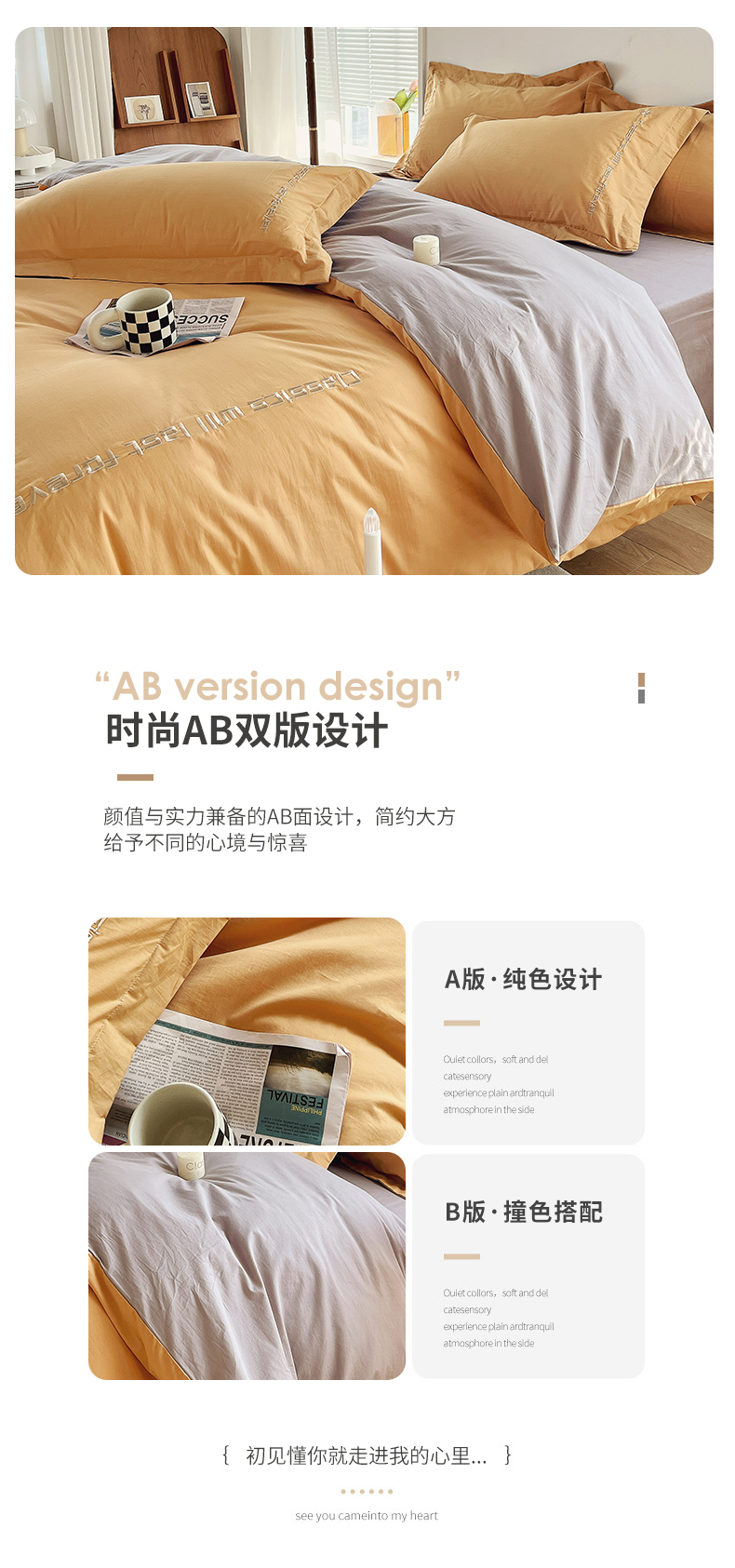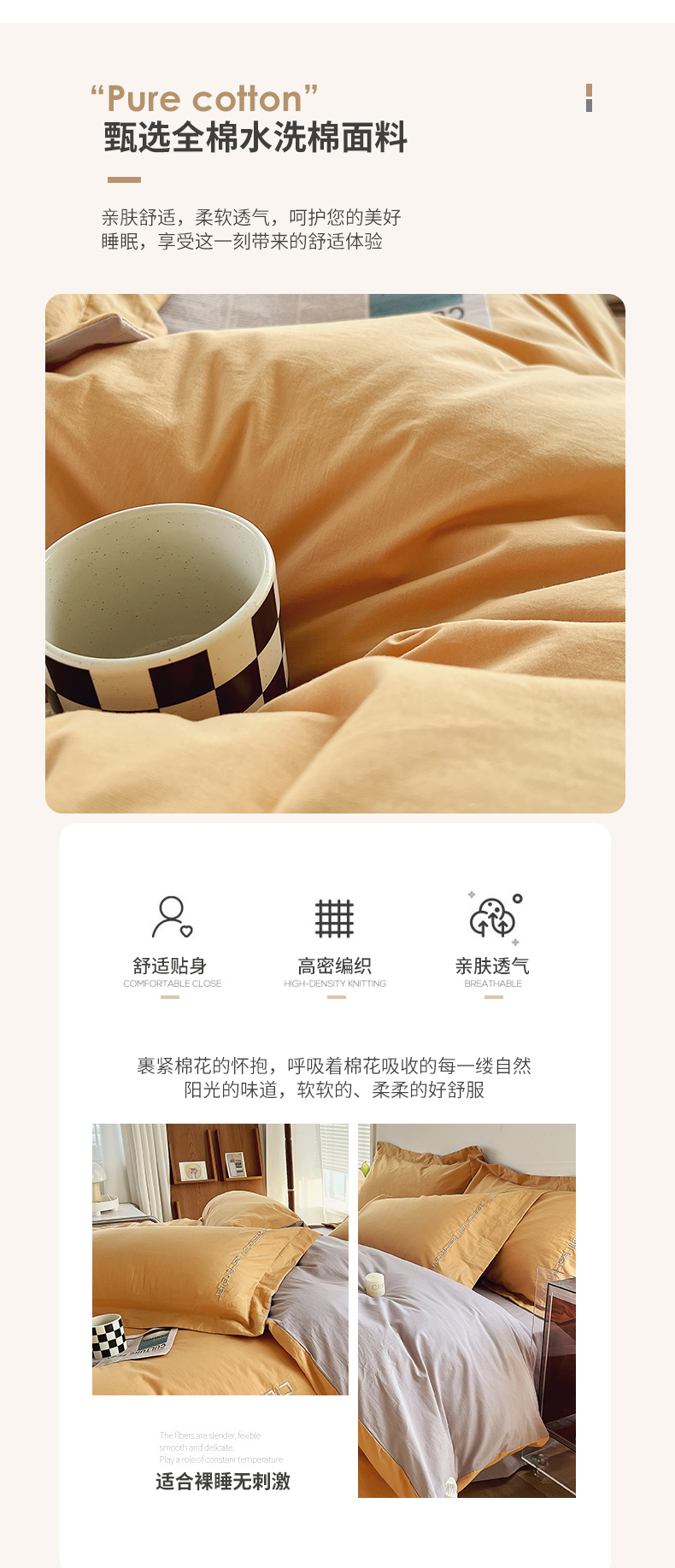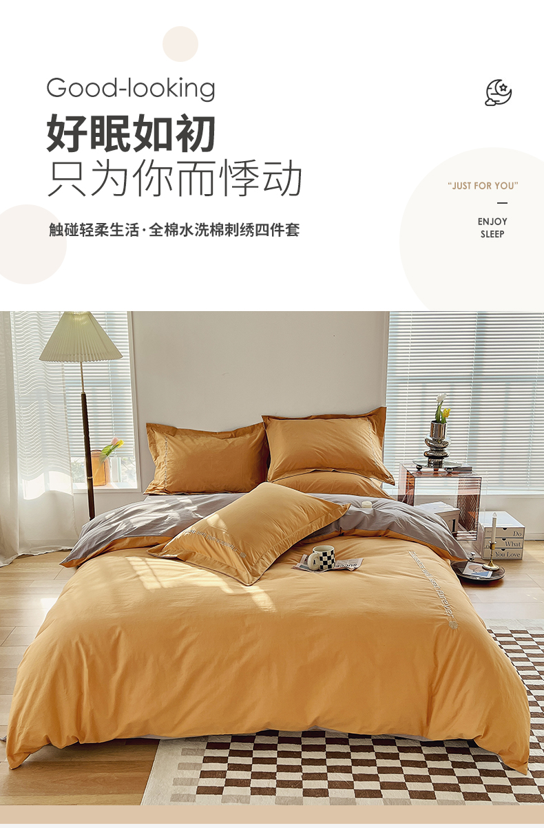 (总)拼社家纺 2026新款A类色织全棉水洗棉四件套纯棉四件套刺绣床上用品-漫系列,繁星蓝+卡其,艾玛绿+卡其,繁星蓝+玫瑰粉,红豆沙+雅灰,迷雾灰+玫瑰粉,蜜粉+雅灰,奶油白+卡其,奶油白+香橙,牛仔蓝+浅蓝,香橙+雅灰