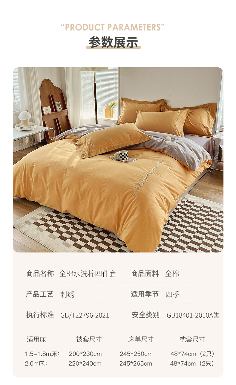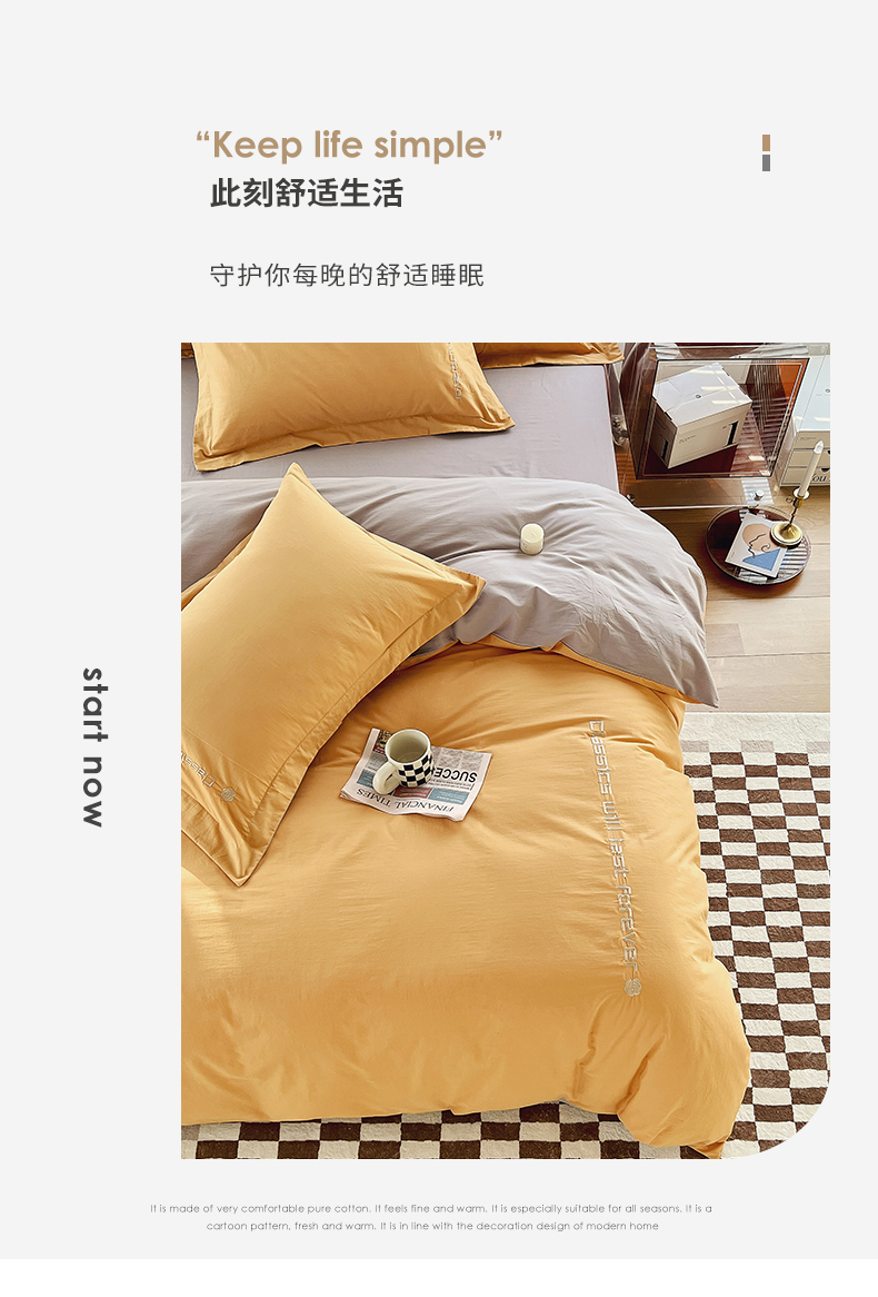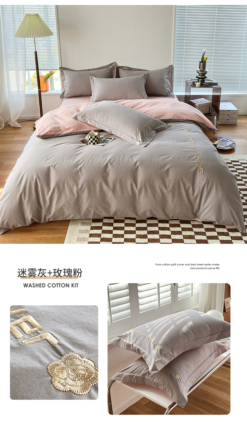 (总)拼社家纺 2026新款A类色织全棉水洗棉四件套纯棉四件套刺绣床上用品-漫系列,繁星蓝+卡其,艾玛绿+卡其,繁星蓝+玫瑰粉,红豆沙+雅灰,迷雾灰+玫瑰粉,蜜粉+雅灰,奶油白+卡其,奶油白+香橙,牛仔蓝+浅蓝,香橙+雅灰