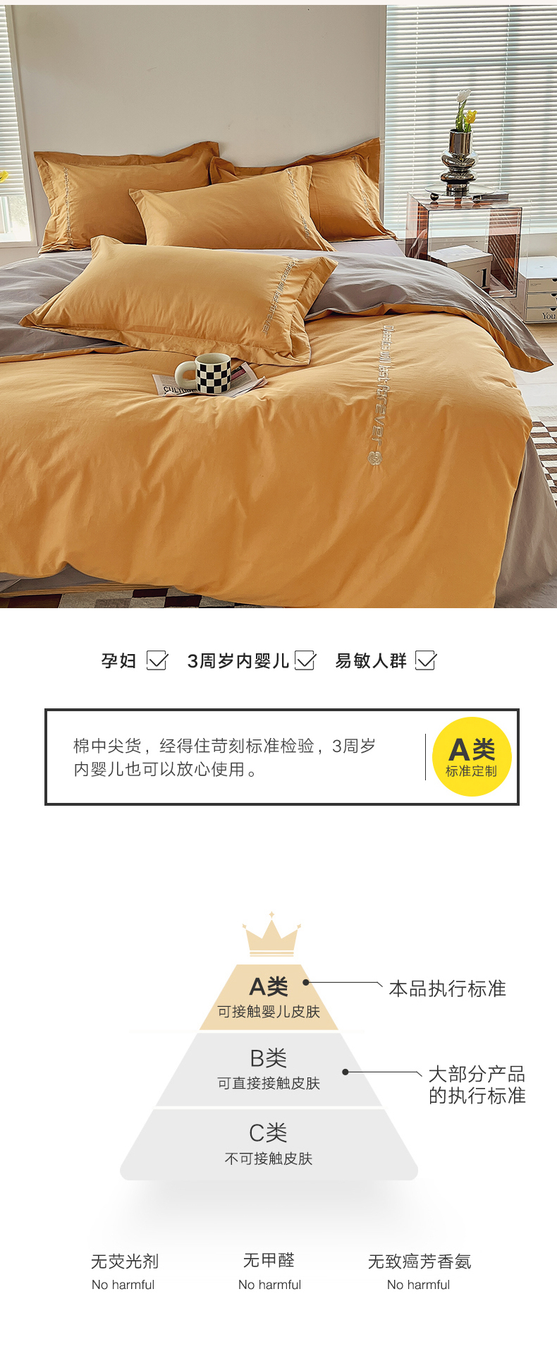 拼社家纺 2026新款A类色织全棉水洗棉四件套纯棉四件套刺绣床上用品-漫系列 香橙+雅灰