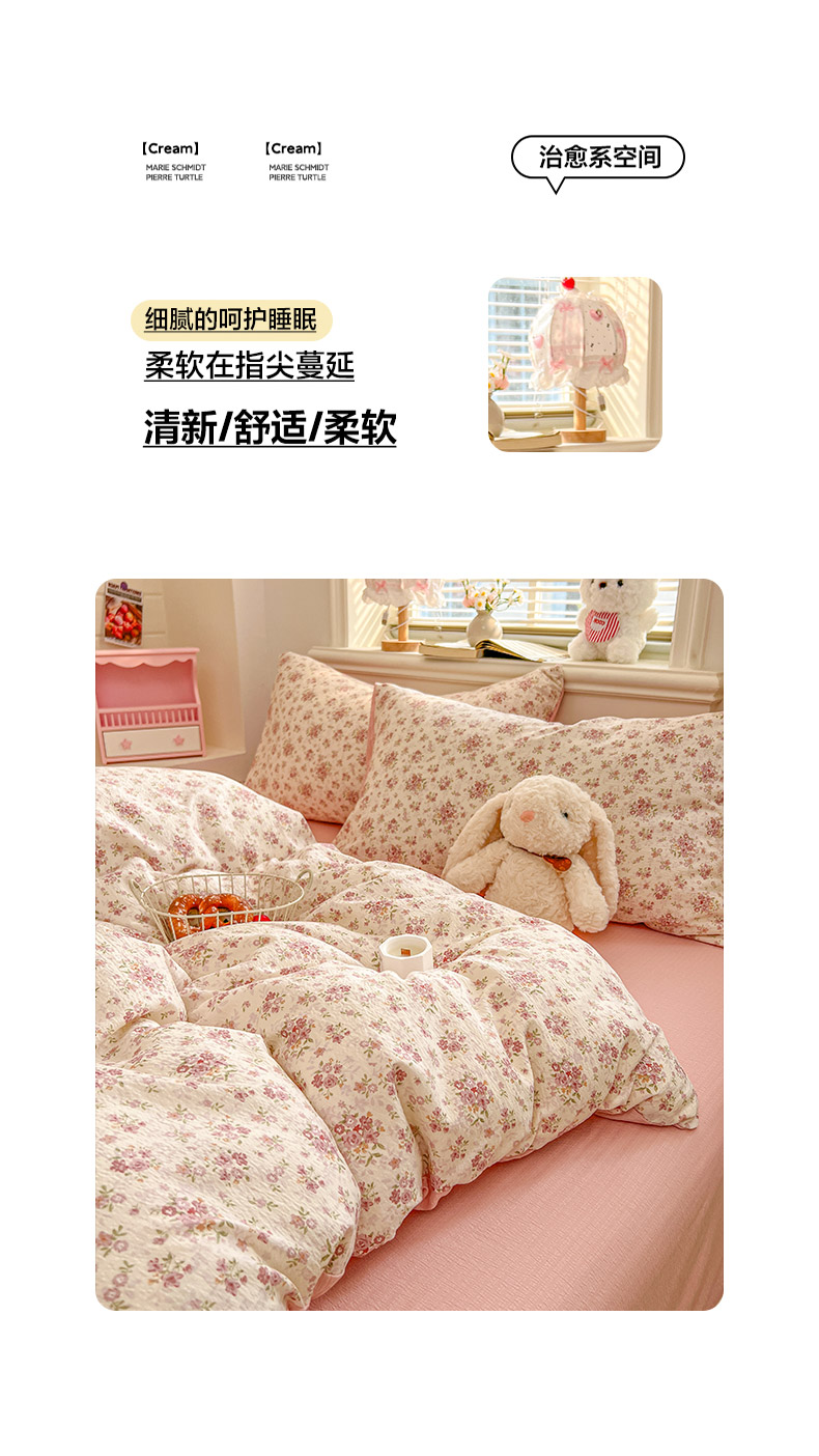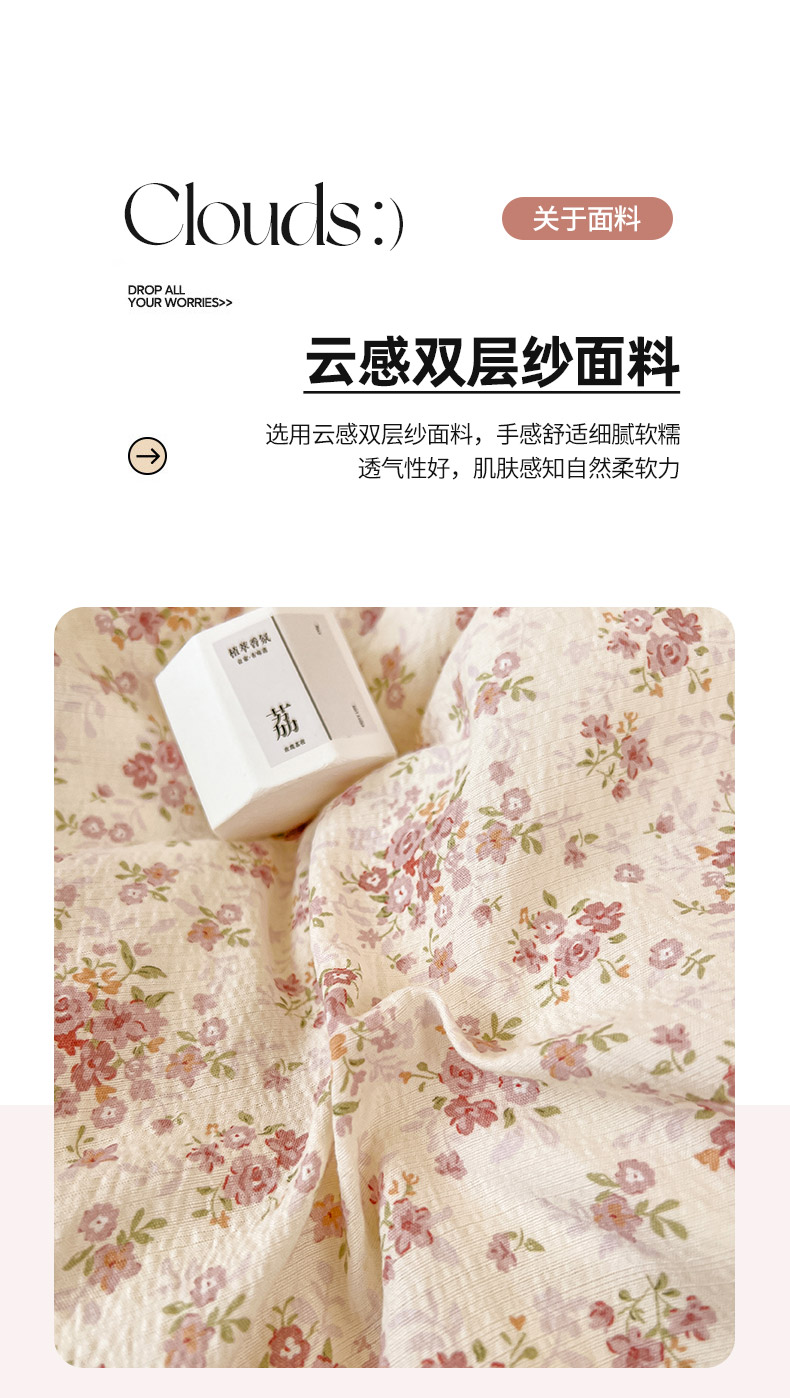 当前位置: 91家纺网 > 商品网购 > 床品套件 > 四件套 > 其它四件套 > 金梦拉家纺 2026春夏新款云感双层纱皱皱纱系列四件套 栀夏