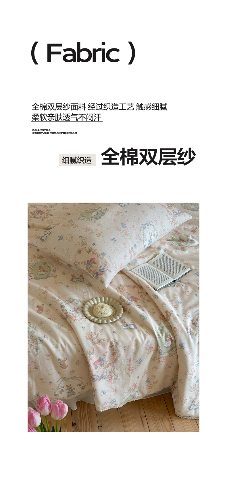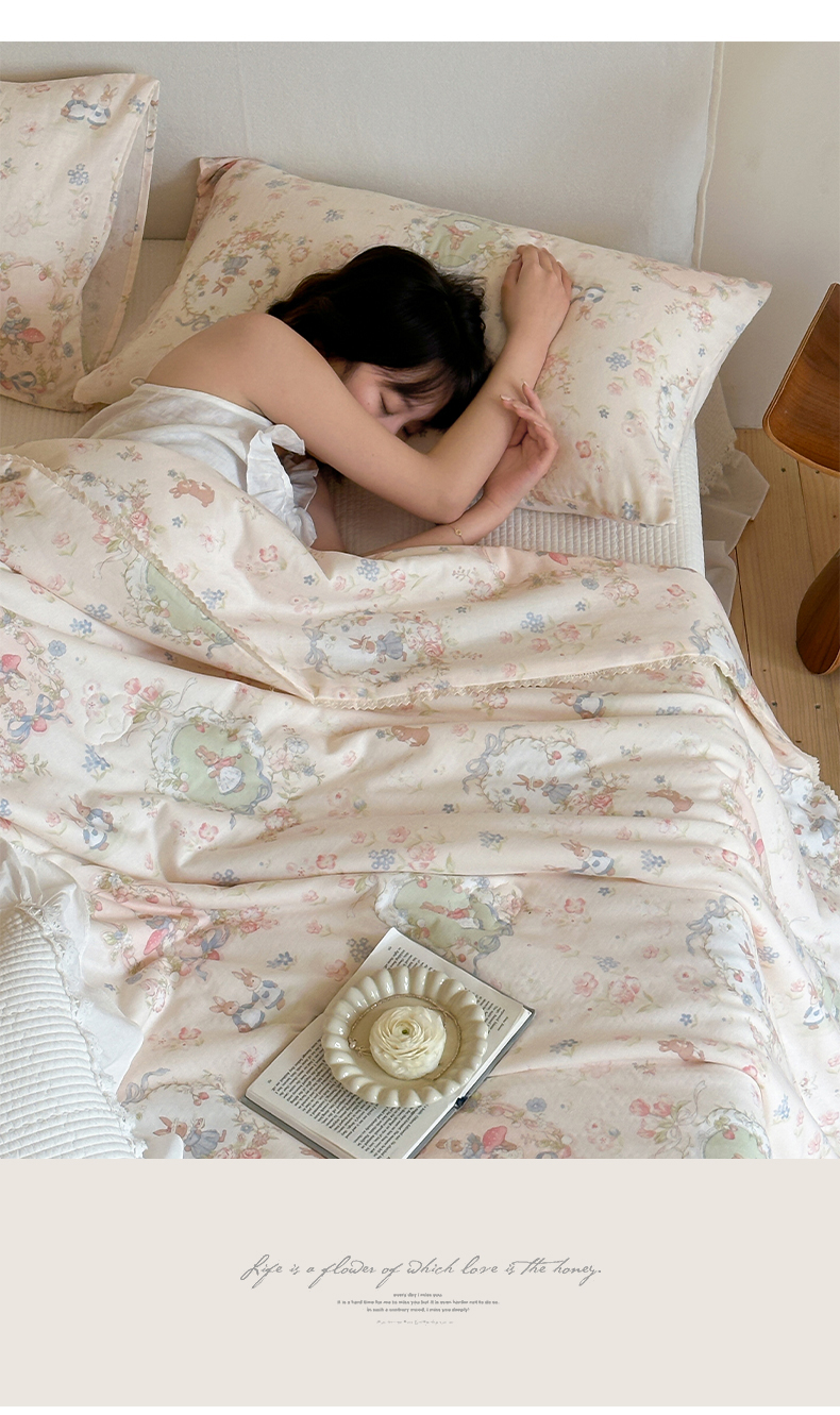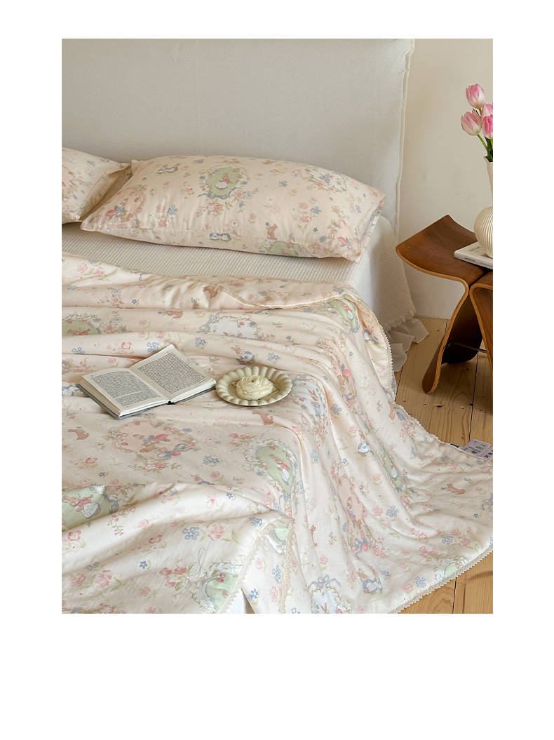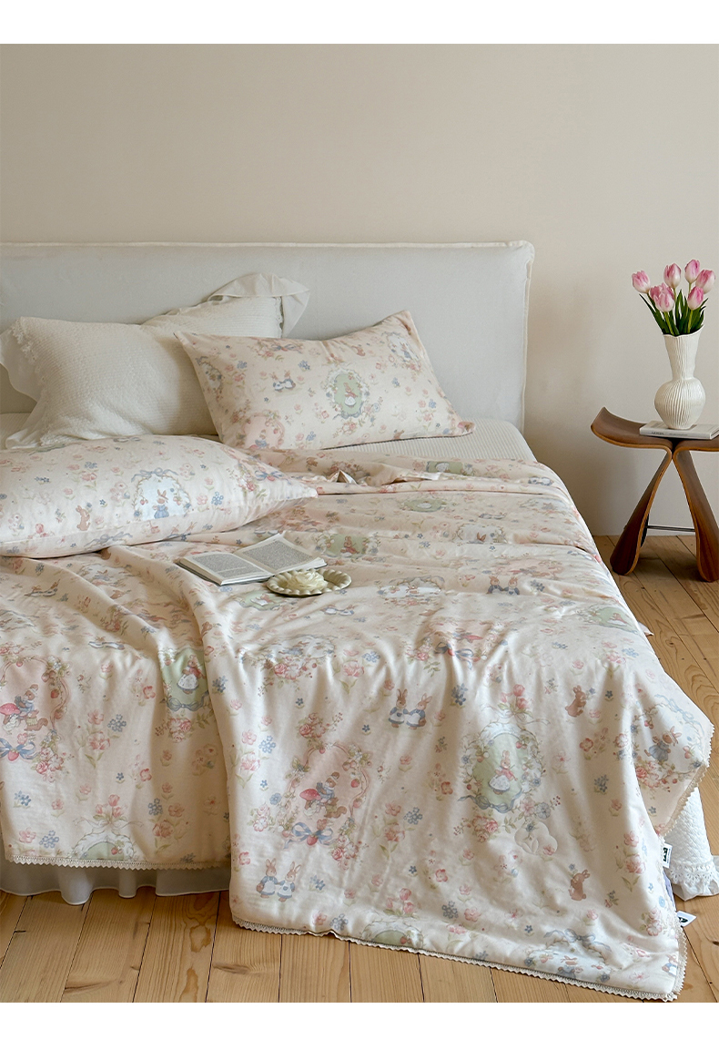 (总)一加一 2026新款复古碎花双层纱大豆夏被夏凉被空调被-纱边花眠,暗香,芬芳,花团锦簇,盛夏,叶影,绽放