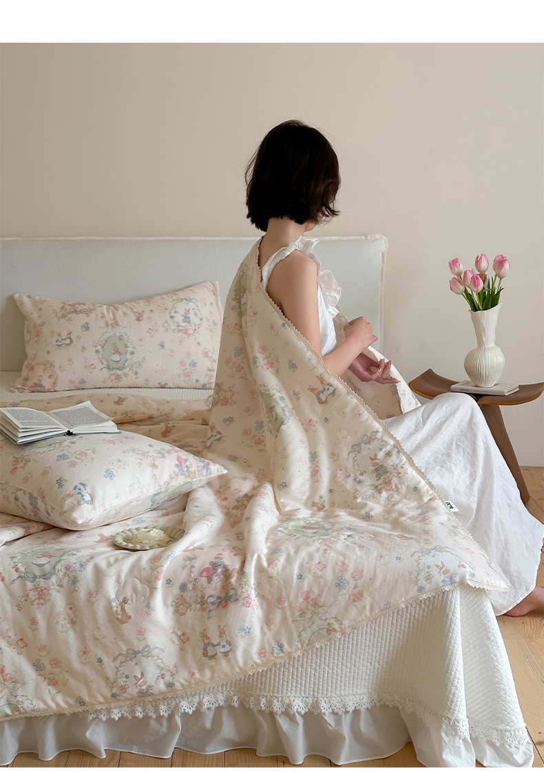 (总)一加一 2026新款全棉双层纱贴布绣大豆夏被-格格乐园,组合图【仅供参考 不可下单】,粉彩早餐熊,粉格小兔,米白小熊,软萌小象,松饼小熊,晚安小象,雾蓝熊语,小熊日记