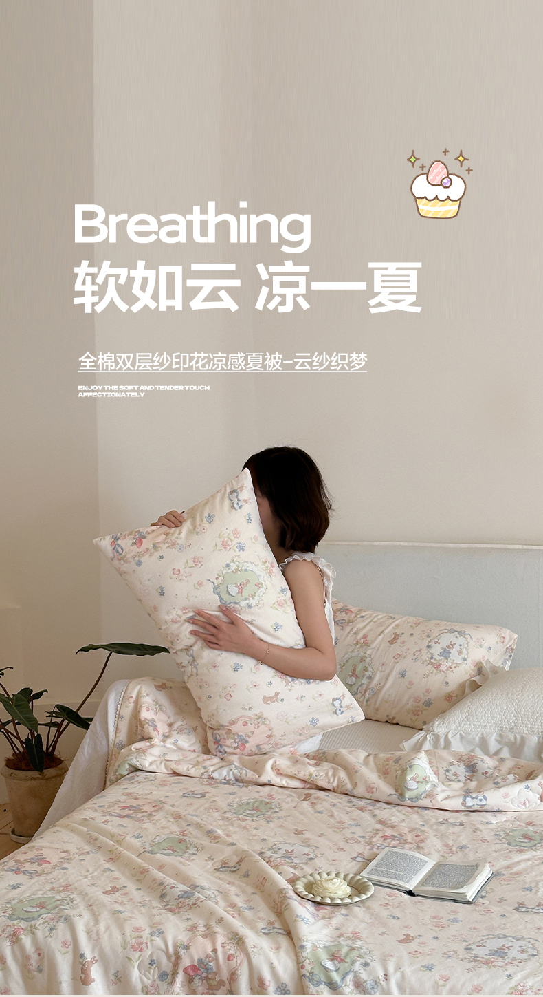 一加一 2026新款全棉双层纱印花凉感夏被-云纱织梦 组合图