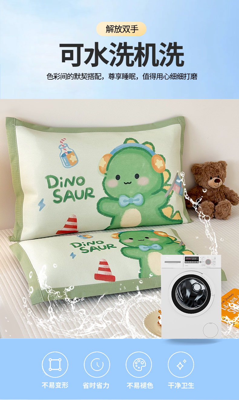 商品名称:嗨生活 2026新款大版加密冰丝枕套儿童枕套幼儿园枕套单品枕套枕套单件 萌萌恐龙