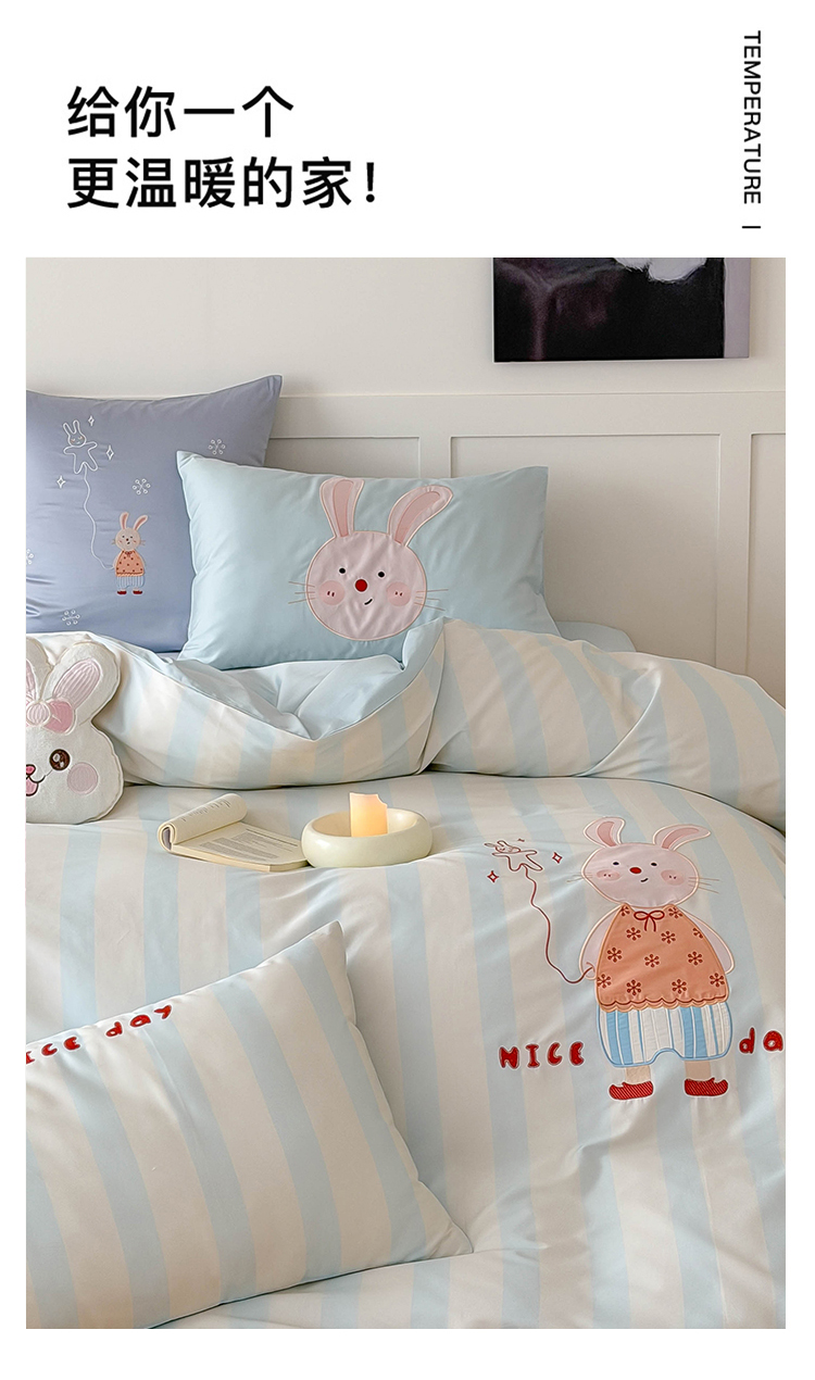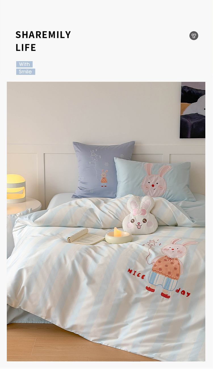 商品名称:(总)西西家居 2026春夏新款100S长绒棉纯棉数码印花绣花四件套-大耳兔