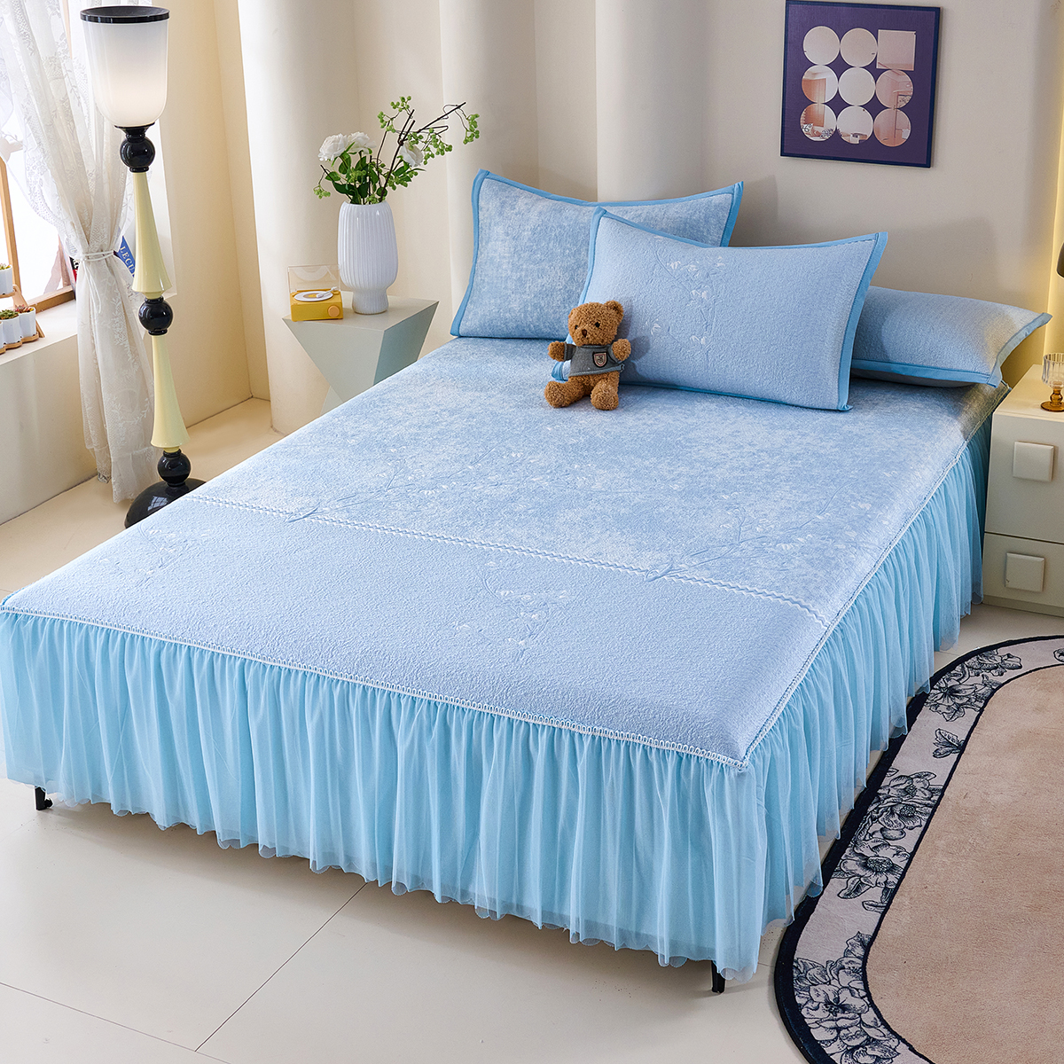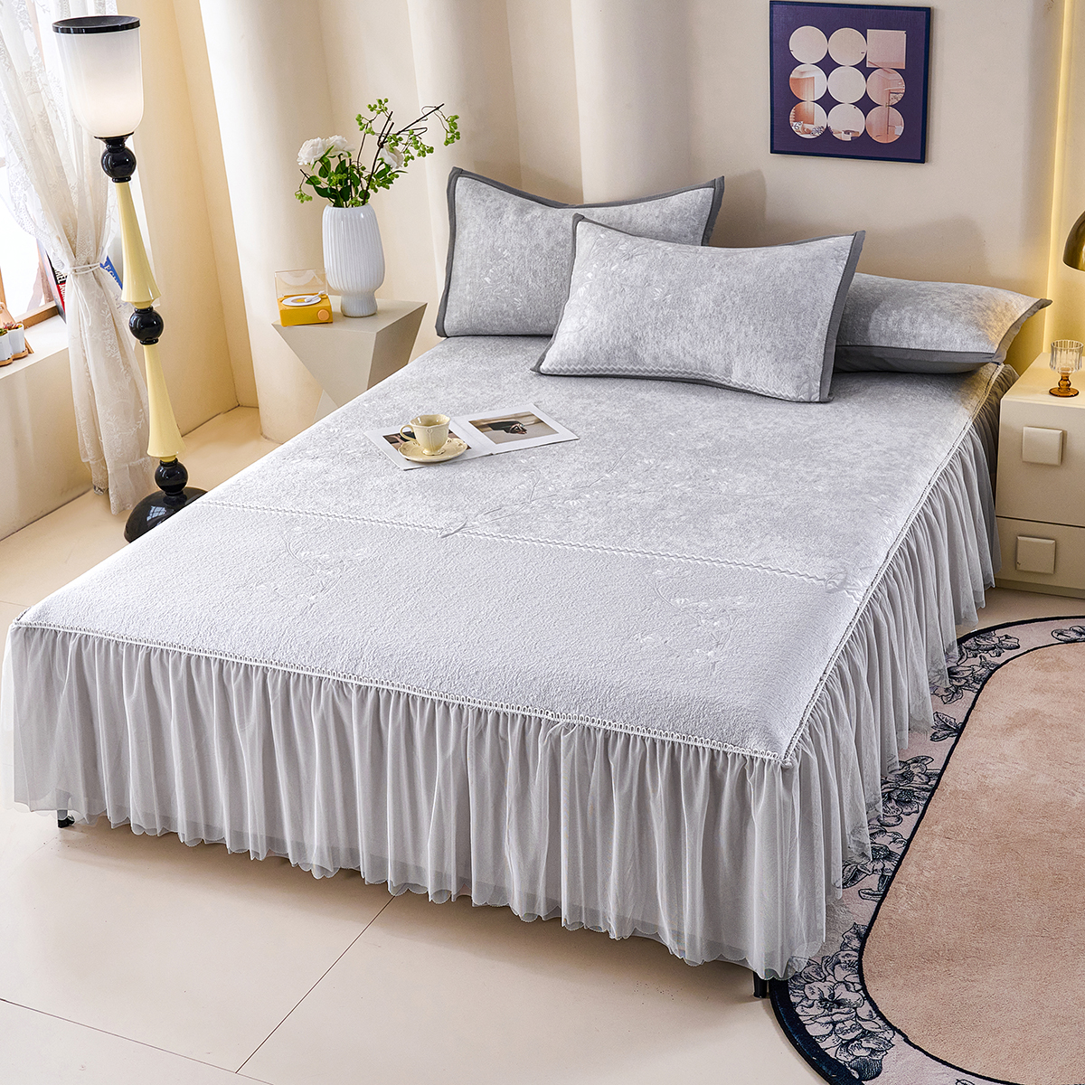 (总)梵克保罗 2026春夏新款雪纺床盖夏被四件套单夏被床盖三件套,奶茶色,嫩芽绿,浅米色,仙气紫,玉芙蓉