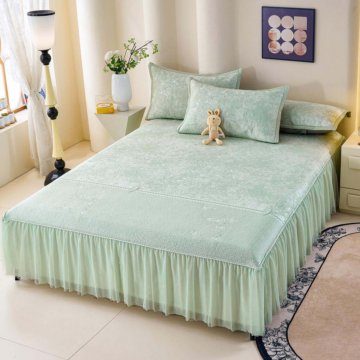 商品名称:梵克保罗 2026新款A类凉感豆豆席床裙款凉席席子-花枝招展 花枝招展-绿