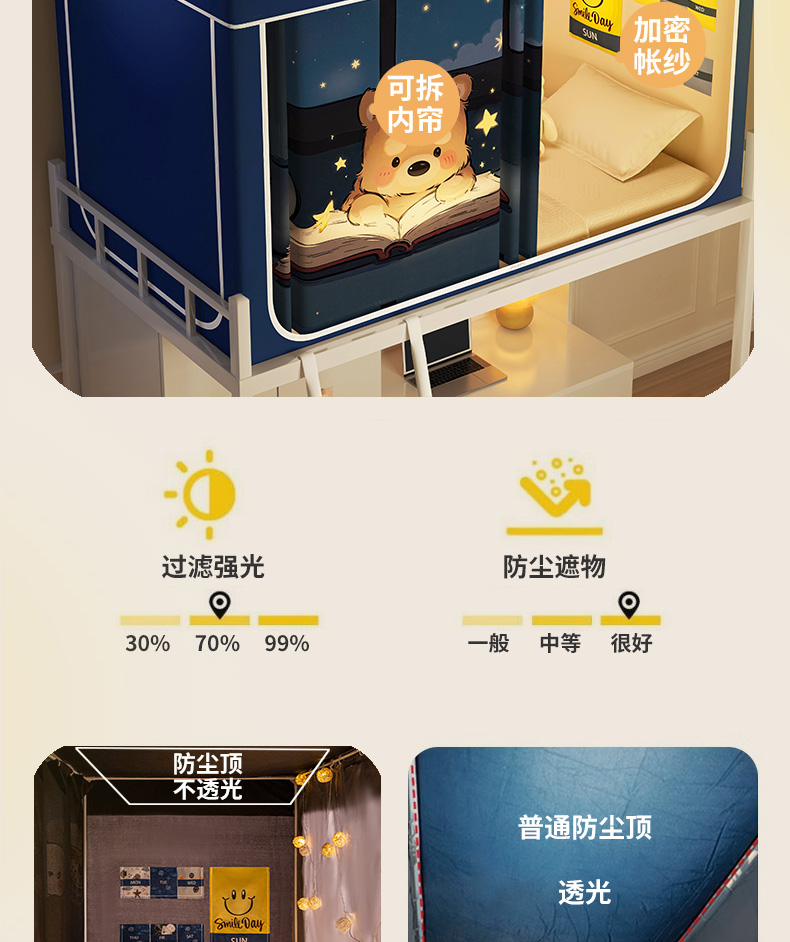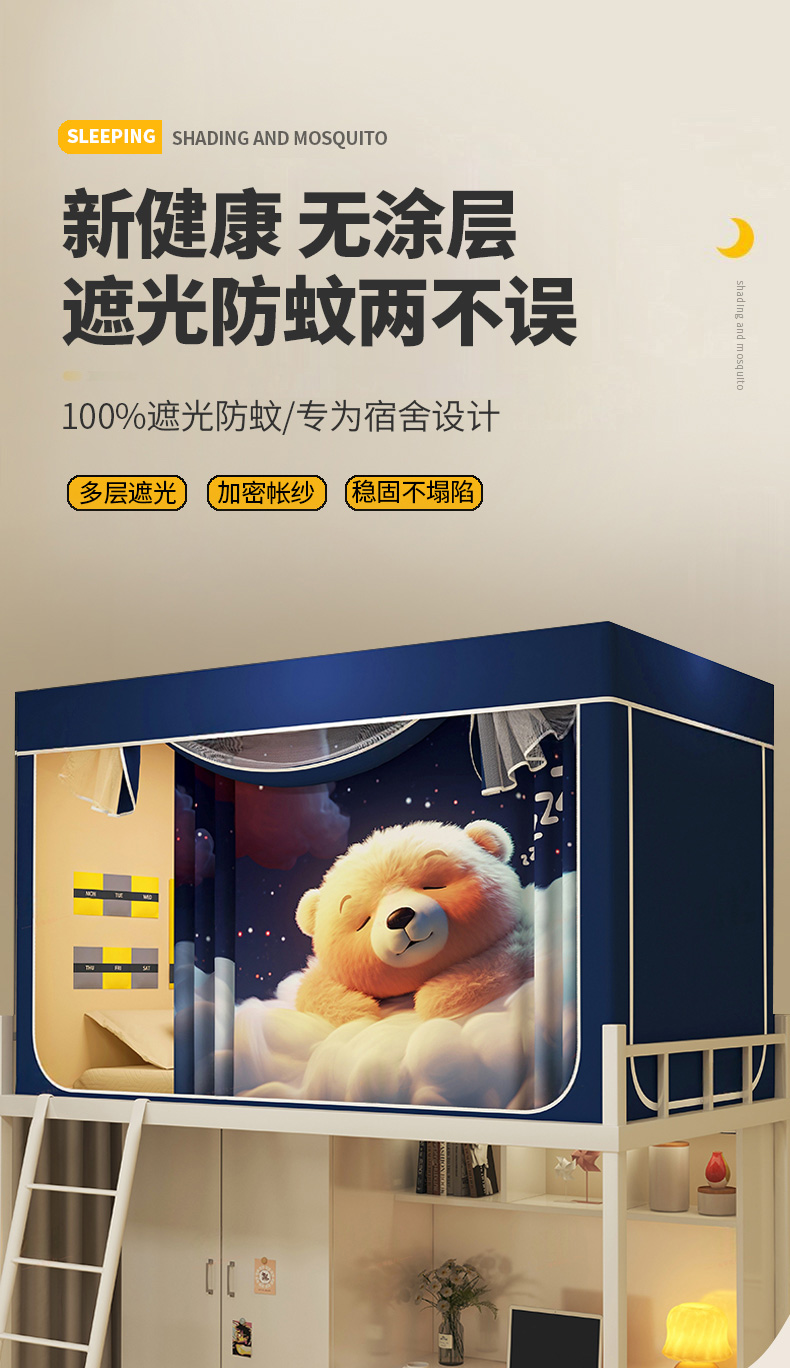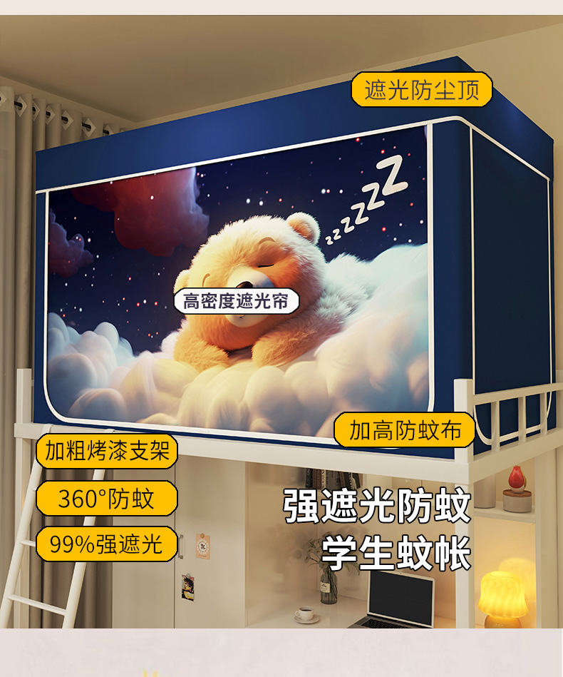 当前位置: 91家纺网 > 商品网购 > 床上用品 > 蚊帐 > 学生蚊帐 > 宅部落 2026新款宅部落学生床帘宿舍上下铺印花无涂层强遮光学生蚊帐 呼噜熊