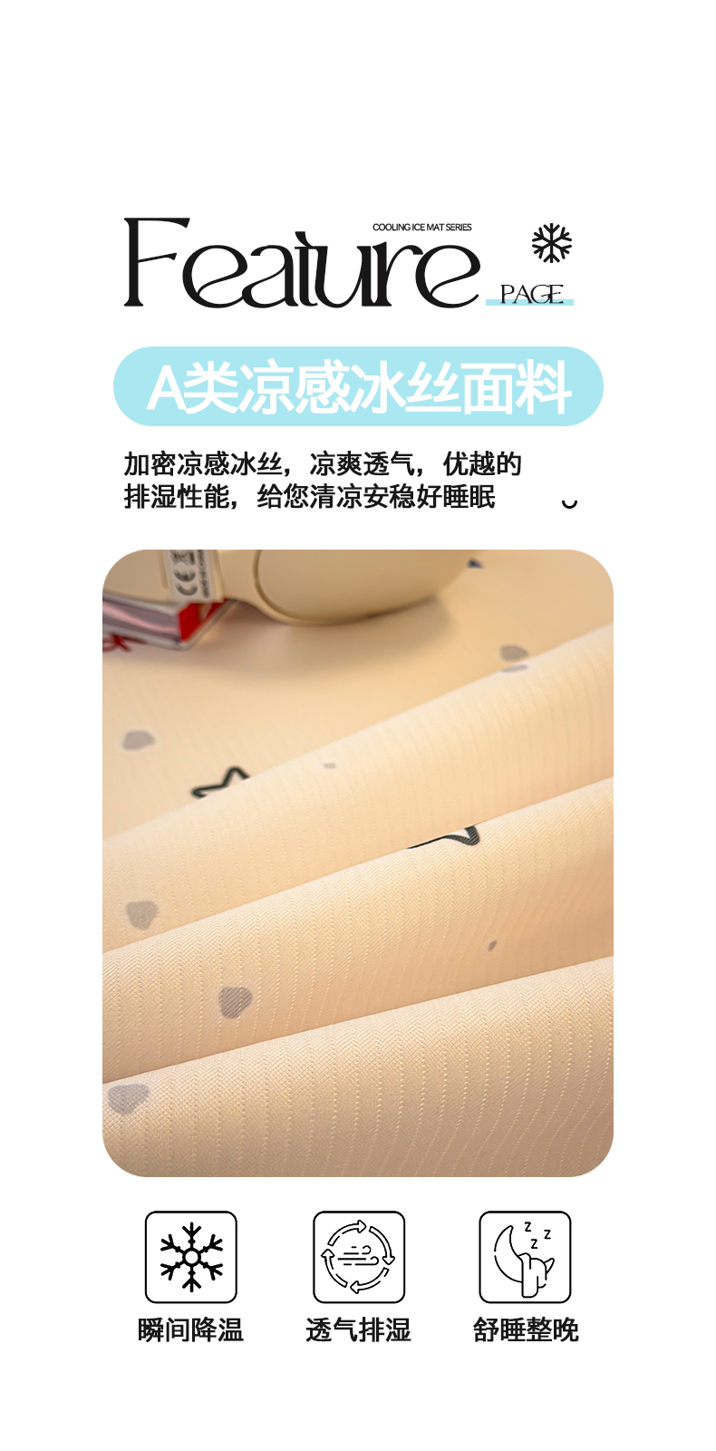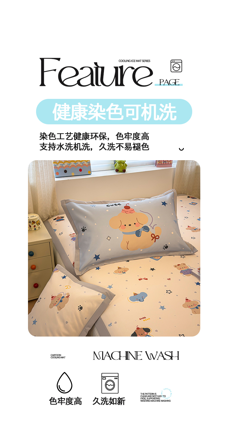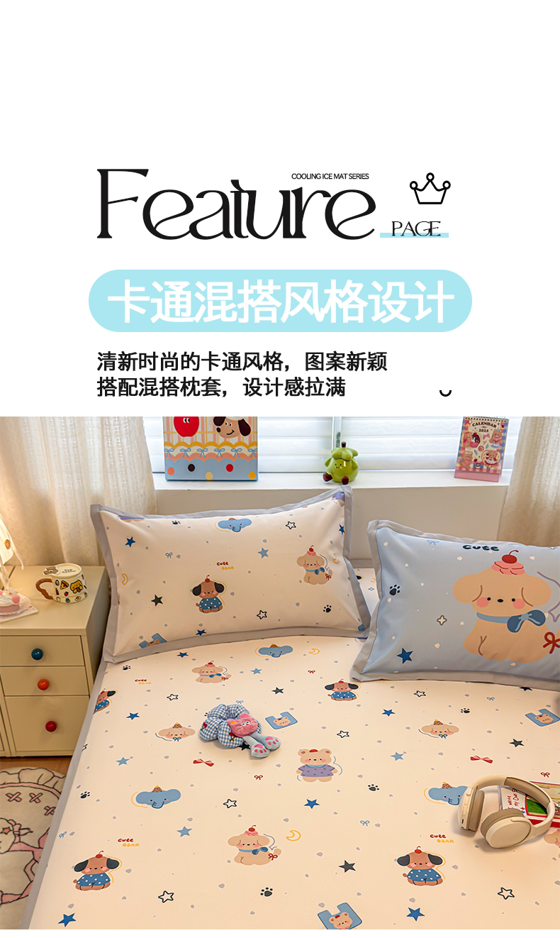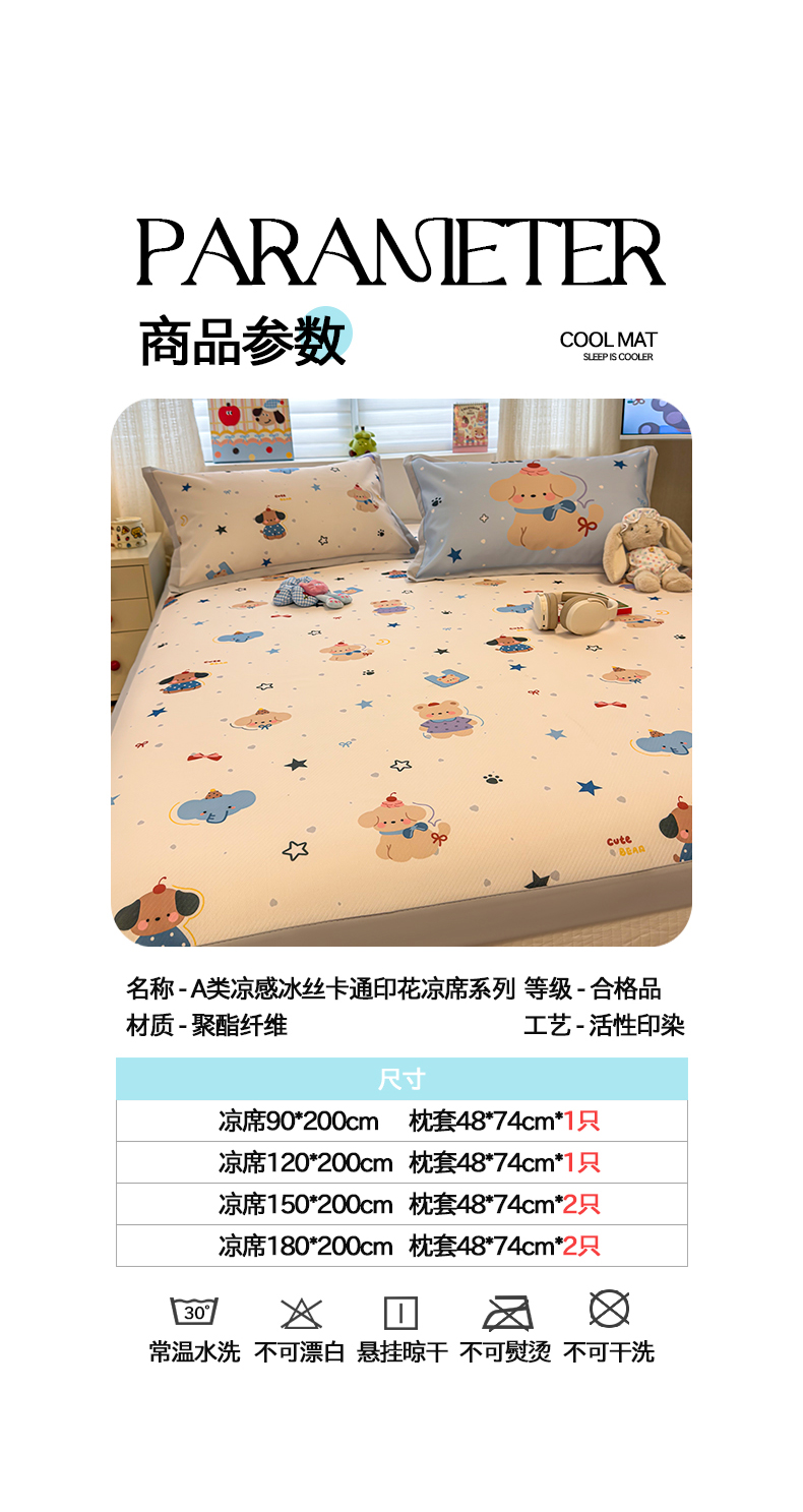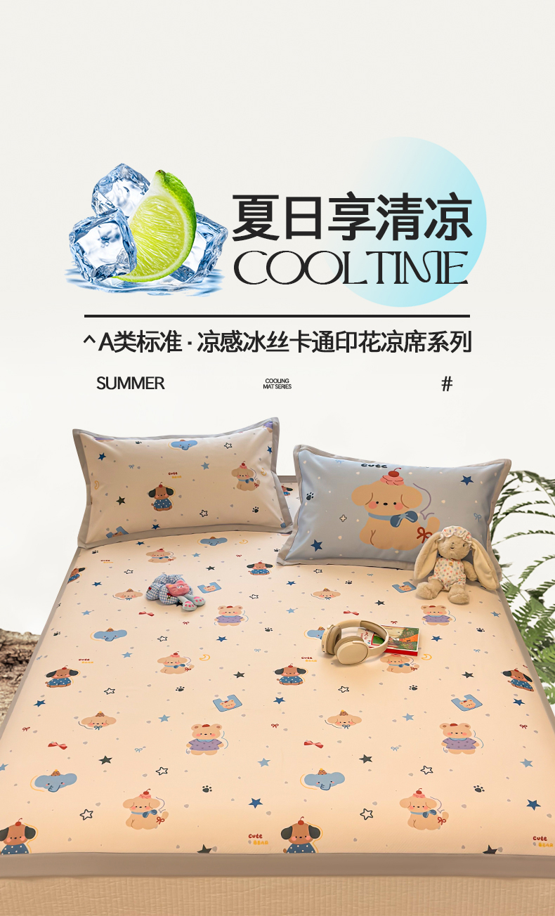 商品名称:懒猫家纺 2026春夏新款卡通印花A类凉感冰丝印花凉席席子 星愿萌宠