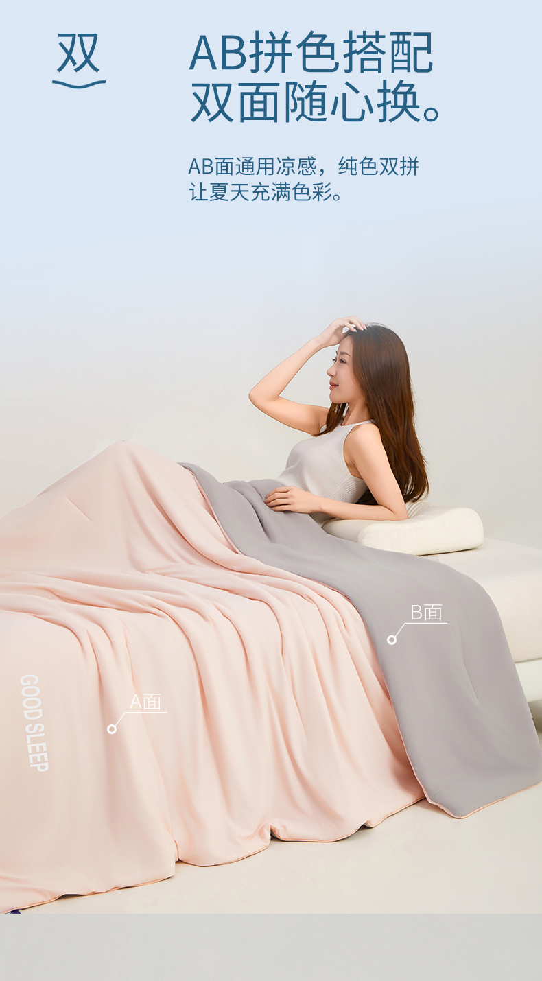 • 91家纺网 家纺一手货源 找家纺 (总)优雅星家纺 2026新款双面凉感丝A类氨纶凉感天丝纯色夏凉被冰激凌夏被西瓜凉感丝夏被,丁香紫,粉拼灰,冰川灰,极光蓝,蓝拼灰,香草绿