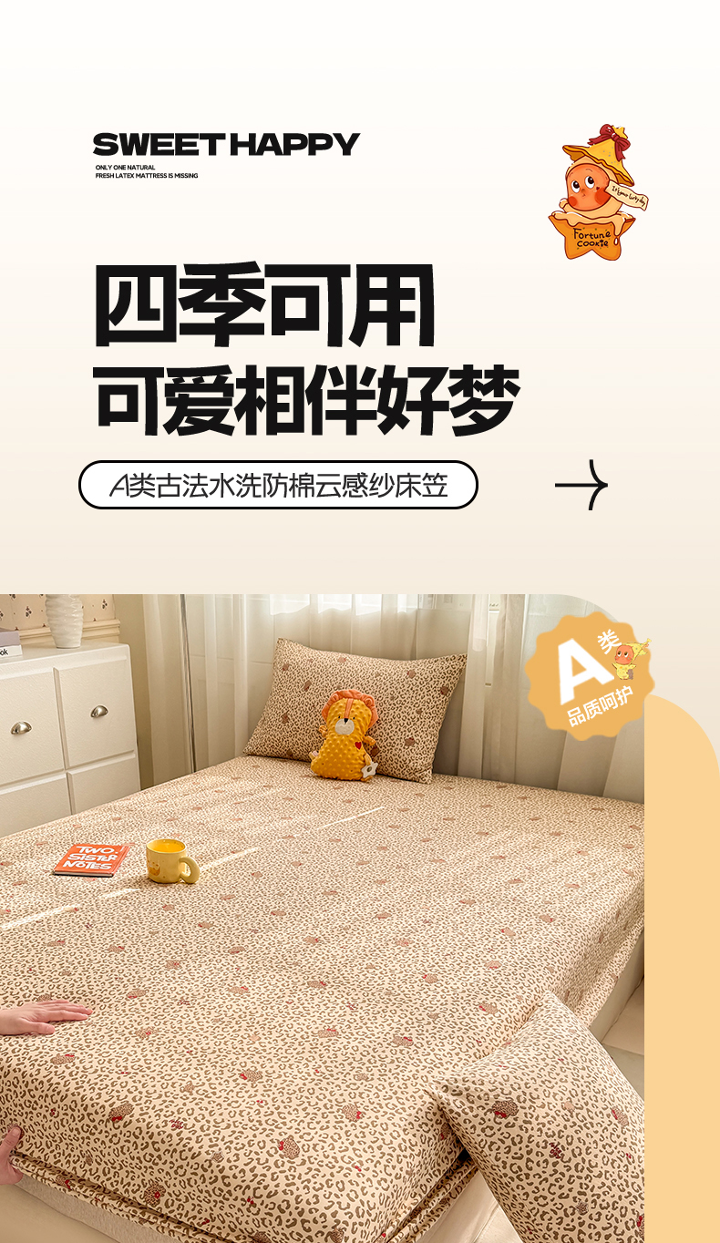 (总)仟网汇 2026新款A类古法水洗棉云感纱单床笠床笠单件,豹纹瞄咖,快乐时光,梦幻灰,奶萌喵咖,圣诞夜,五彩斑斓,小波点,小木马,星星仔,逐梦,组合图(仅供展示不可下单)