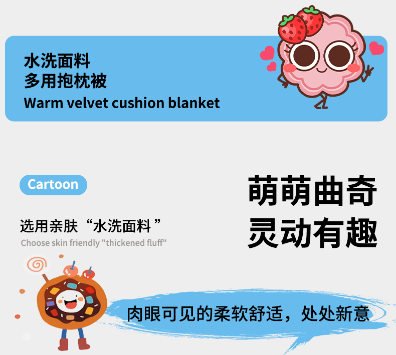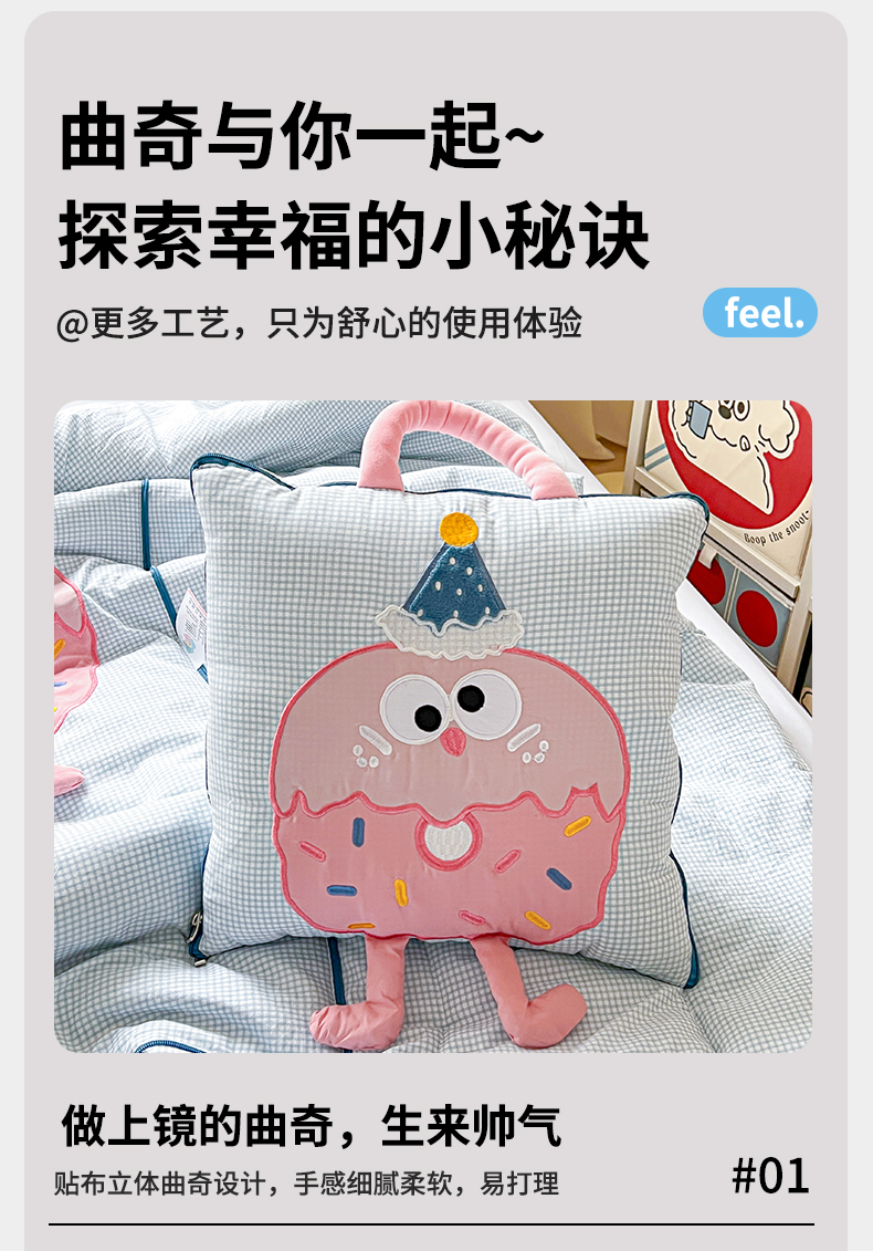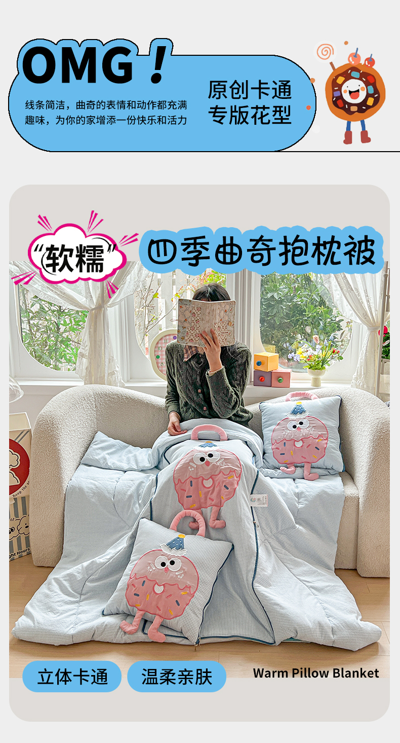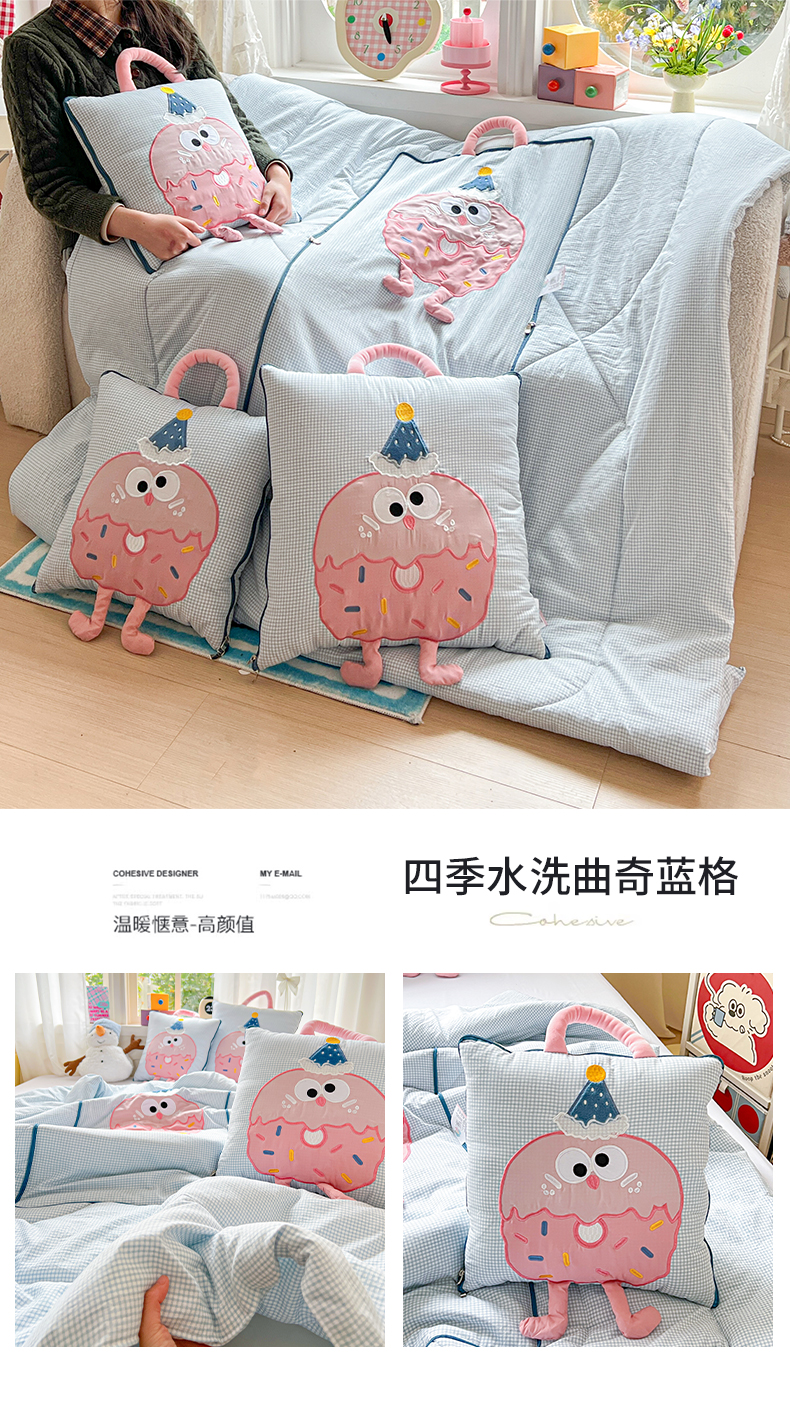 商品名称:古本家居 2026新款四季款水洗曲奇抱枕被 四季水洗曲奇蓝格