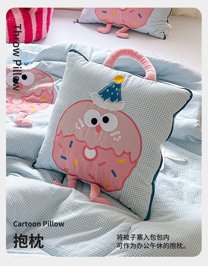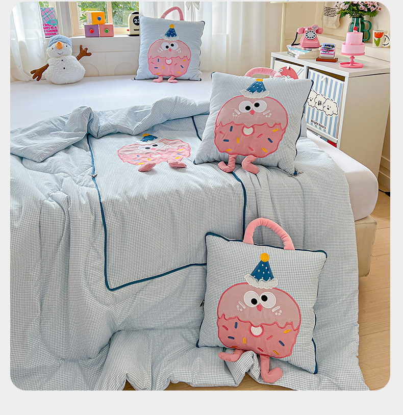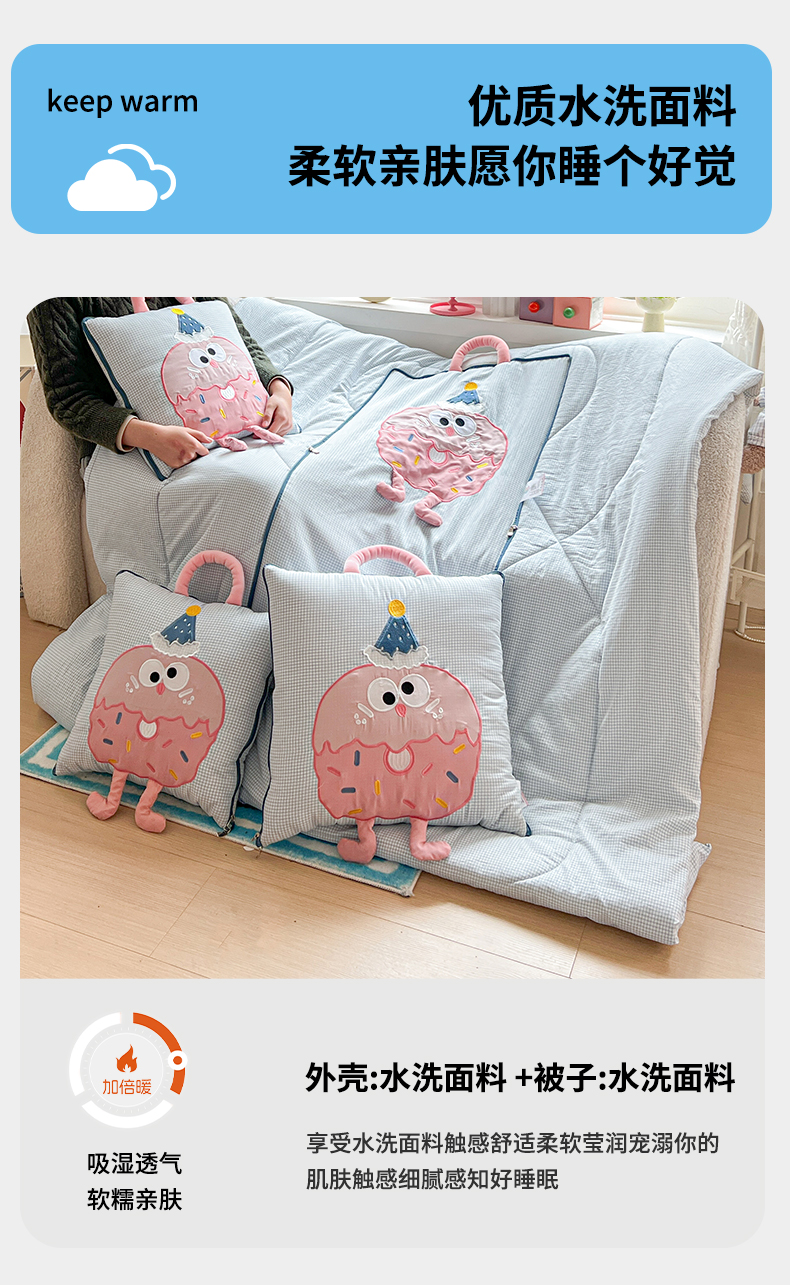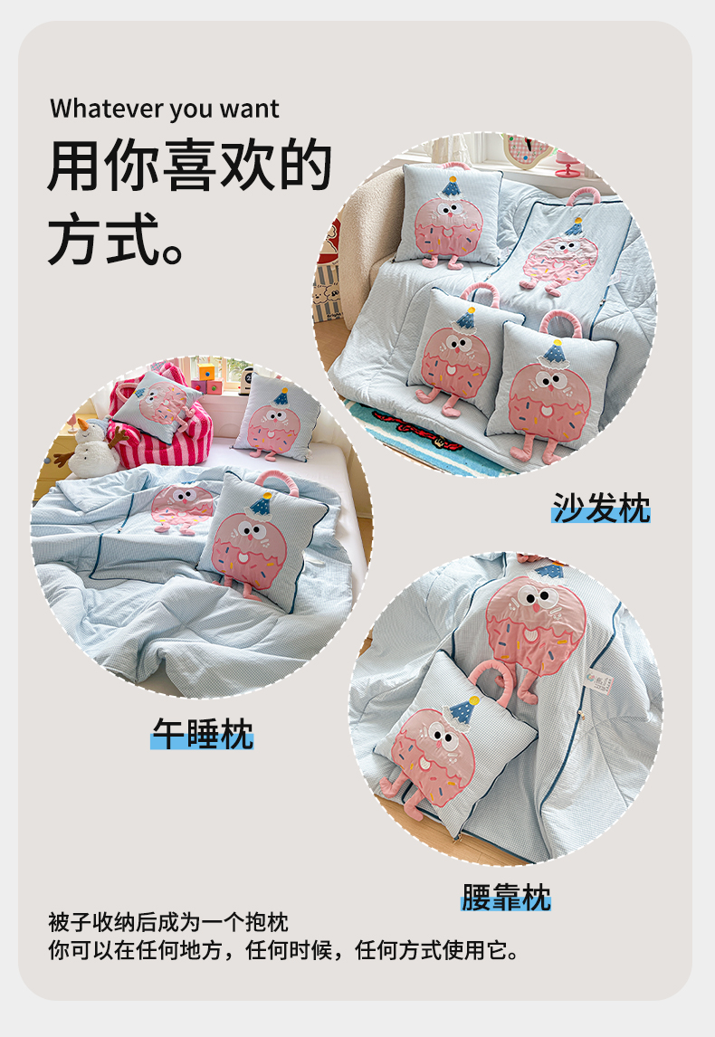 (总)古本家居 2026新款四季款水洗小星人抱枕被,四季小星人绿格,四季小星人粉格,四季小星人黄格,四季小星人蓝格