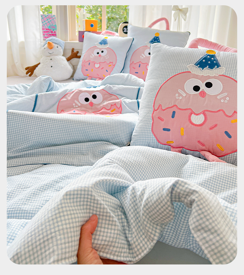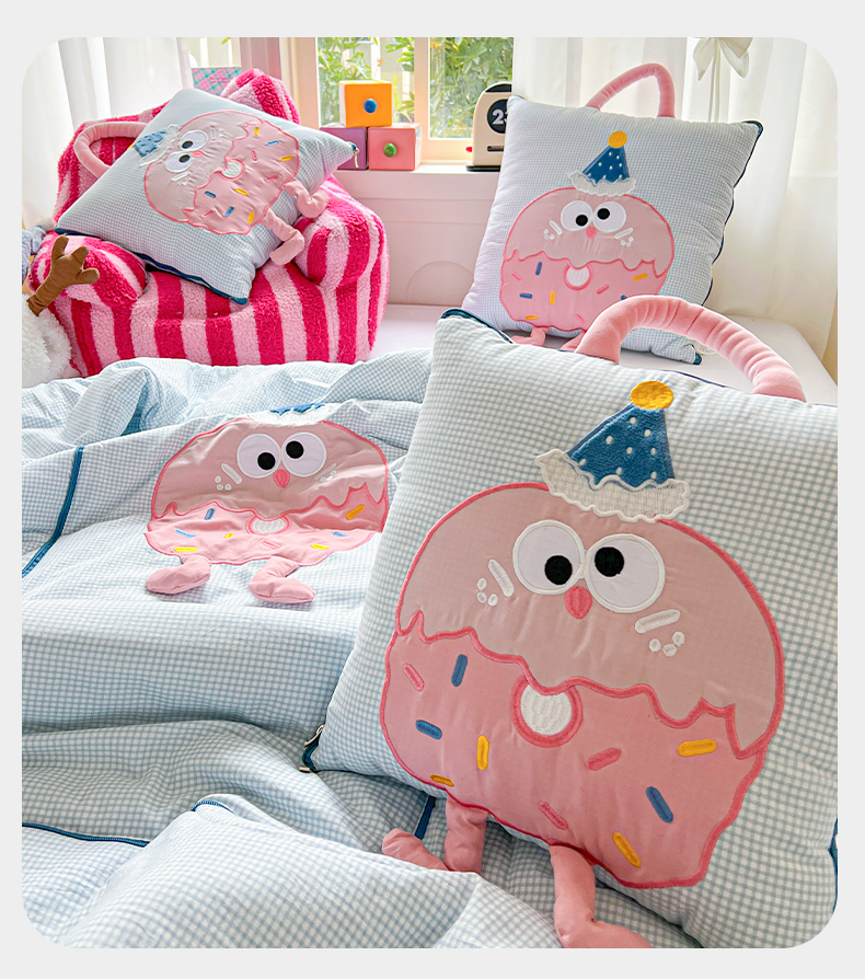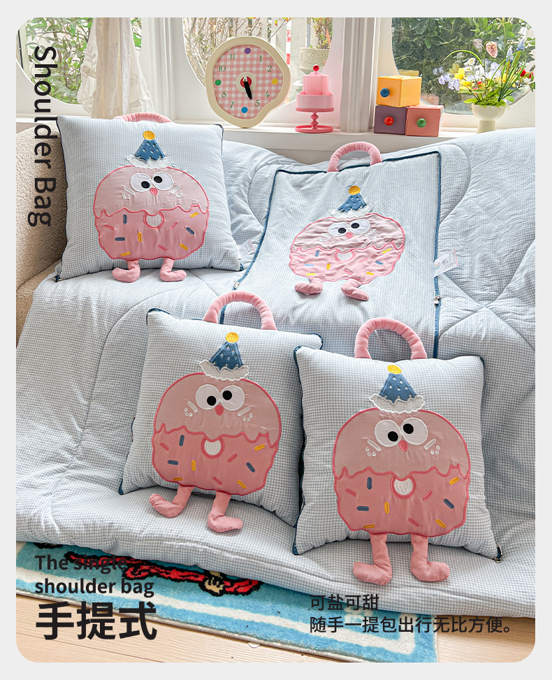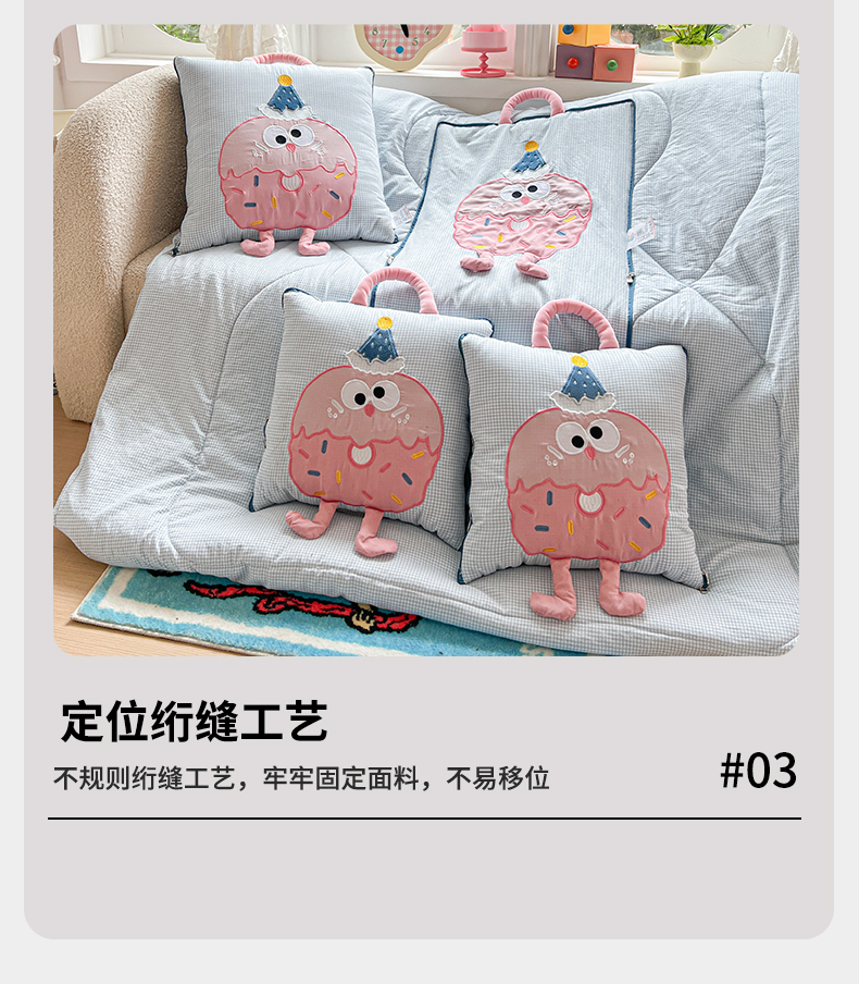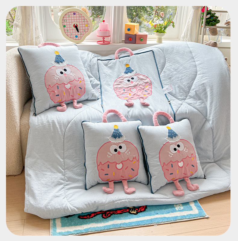 (总)古本家居 2026新款四季款水洗小星人抱枕被,四季小星人绿格,四季小星人粉格,四季小星人黄格,四季小星人蓝格