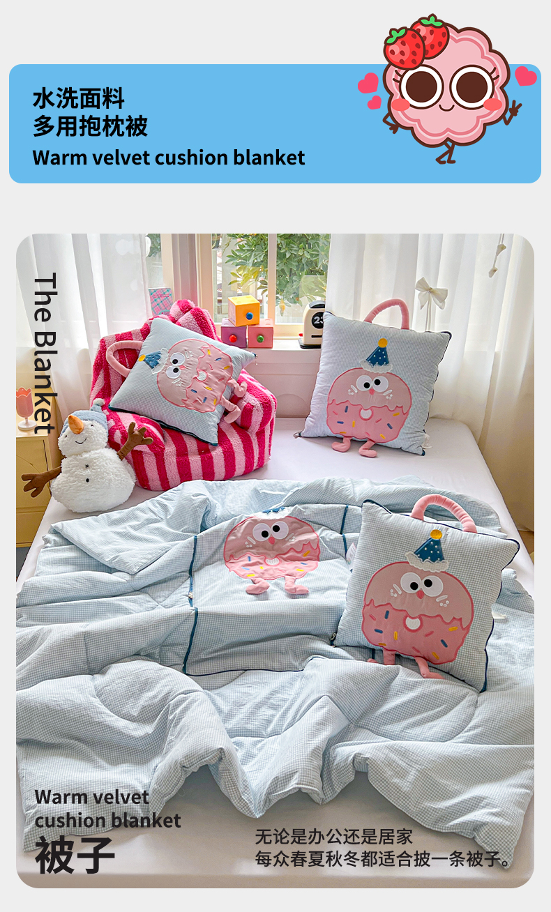 (总)古本家居 2026新款四季款水洗曲奇抱枕被,四季水洗曲奇粉格,四季水洗曲奇蓝格