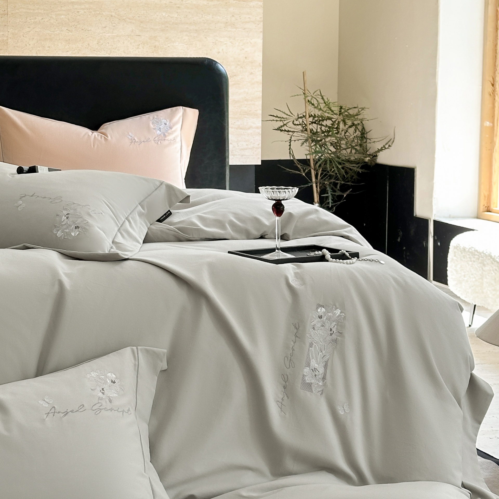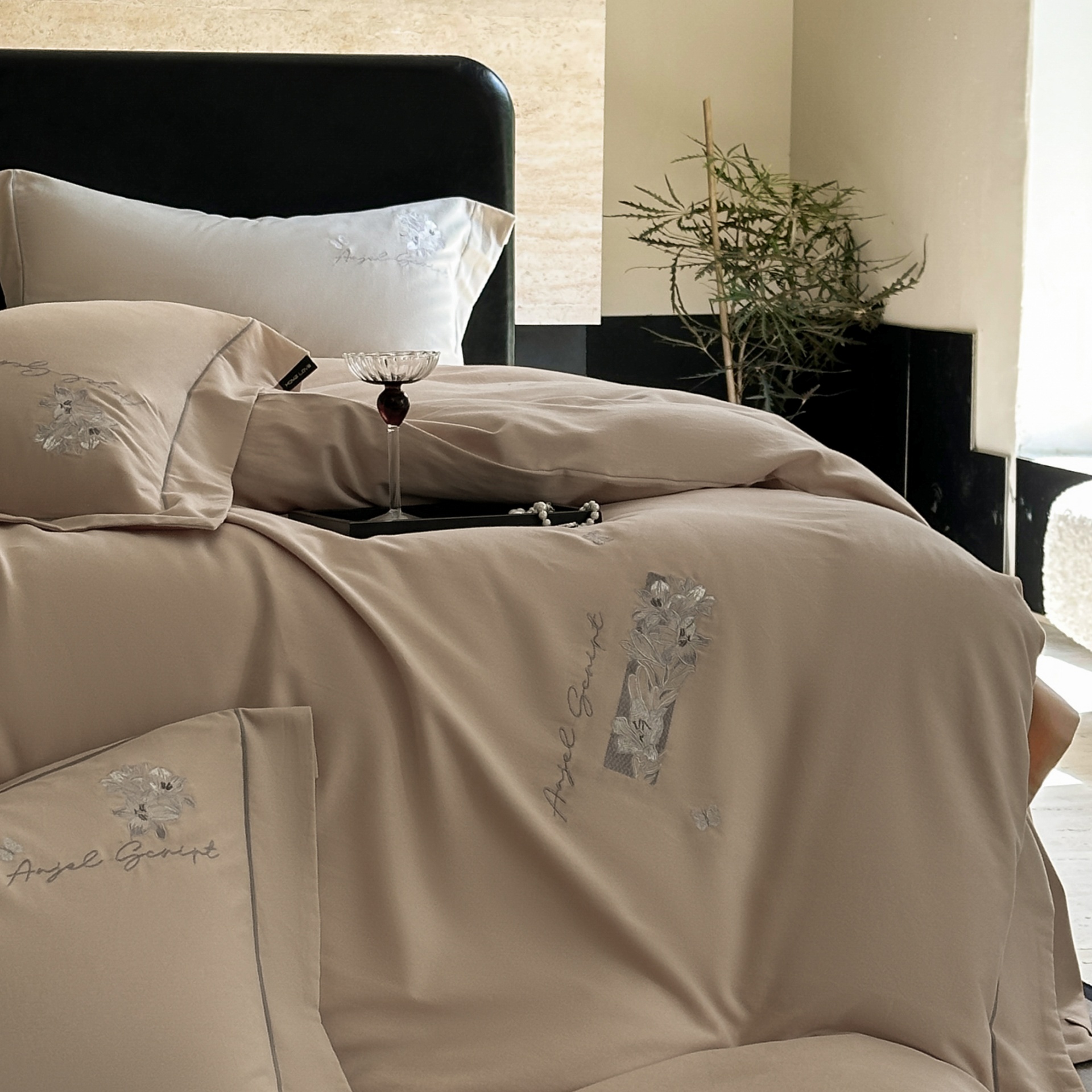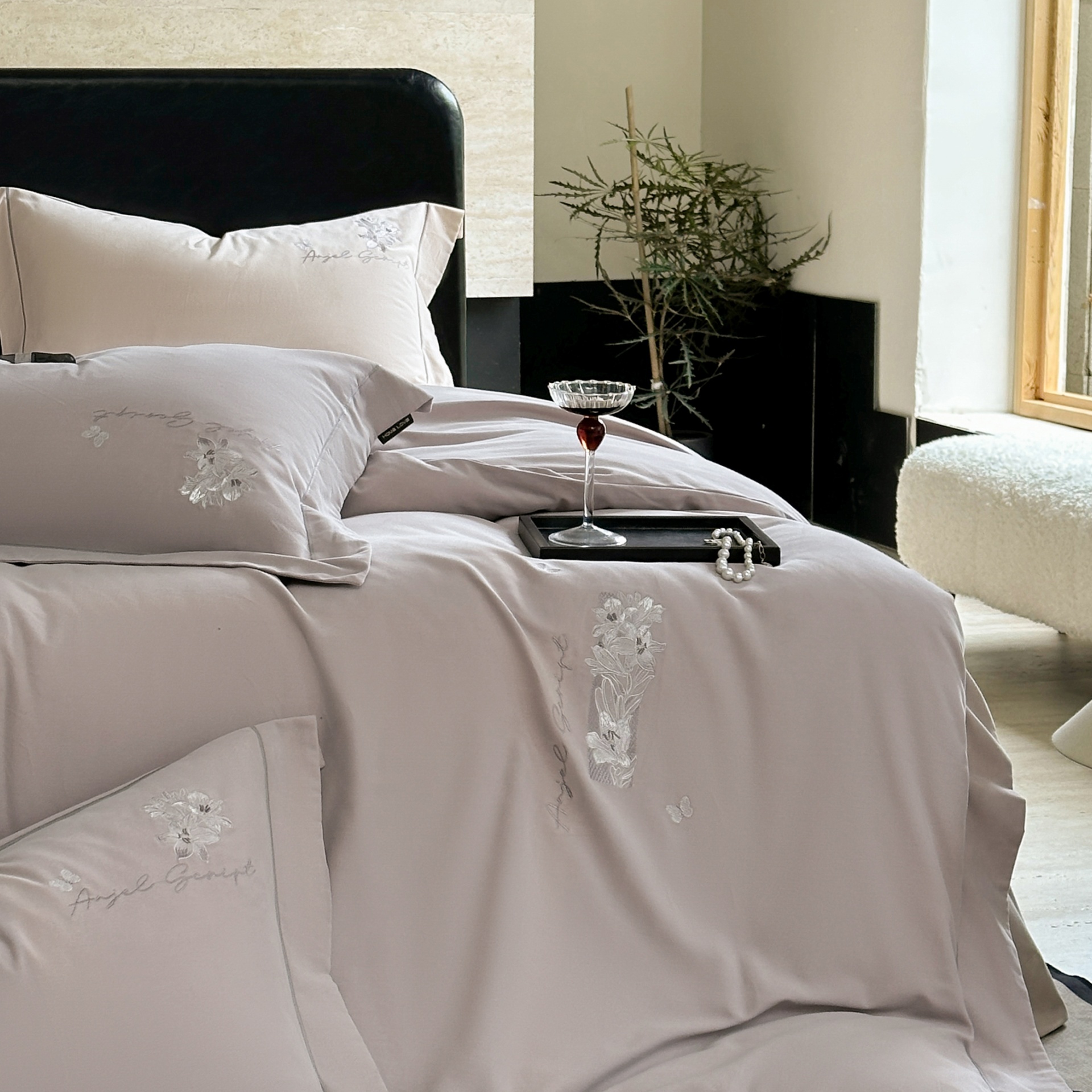(总)芯丝路家纺 2026春夏新款初棉纯色绣花四件套(宽边嵌线工艺款)-菲奥娜,菲奥娜-摩卡棕,菲奥娜-芳菲紫,菲奥娜-莫奈绿,菲奥娜-浅咖黄,菲奥娜-月光灰,菲奥娜-珍珠白