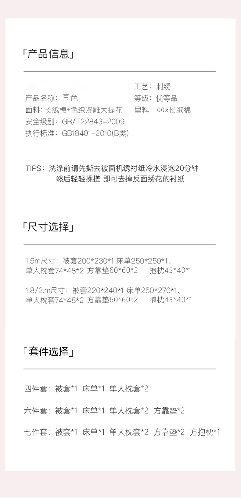 [{"sp_id":11,"sp_name":"\u989c\u8272","sp_format":2,"sp_list":[{"sp_value_id":1663,"sp_value_name":"\u56fd\u8272","sp_value_image":{"id":999,"path":"https:\/\/img3.91jf.com\/ghelp\/2026\/20260313\/20260313113147_631263.jpeg"},"sp_value_video":{"id":0,"img":"","path":"","time":0,"download_num":0,"play_num":0},"price":"180.00","storage":1500,"weight":"2.500","is_check_weight":0,"plus_price":"","sp_sort":0}]},{"sp_id":10,"sp_name":"\u5c3a\u5bf8","sp_format":1,"sp_list":[{"sp_value_id":41,"sp_value_name":"\u3010\u5e8a\u5355\u6b3e\u30111.5\u56db\u4ef6\u5957-\u88ab\u5957200x230","sp_value_image":{"id":0,"path":""},"sp_value_video":{"id":0,"img":"","path":"","time":0,"download_num":0,"play_num":0},"price":"180.00","storage":500,"weight":"2.500","is_check_weight":0,"plus_price":"","sp_sort":5},{"sp_value_id":42,"sp_value_name":"\u3010\u5e8a\u5355\u6b3e\u30111.8\u56db\u4ef6\u5957-\u88ab\u5957200x230","sp_value_image":{"id":0,"path":""},"sp_value_video":{"id":0,"img":"","path":"","time":0,"download_num":0,"play_num":0},"price":"180.00","storage":500,"weight":"2.500","is_check_weight":0,"plus_price":"","sp_sort":6},{"sp_value_id":43,"sp_value_name":"\u3010\u5e8a\u5355\u6b3e\u30112.0\u56db\u4ef6\u5957-\u88ab\u5957220x240","sp_value_image":{"id":0,"path":""},"sp_value_video":{"id":0,"img":"","path":"","time":0,"download_num":0,"play_num":0},"price":"195.00","storage":500,"weight":"2.800","is_check_weight":0,"plus_price":"","sp_sort":7}]}]