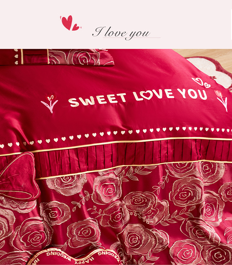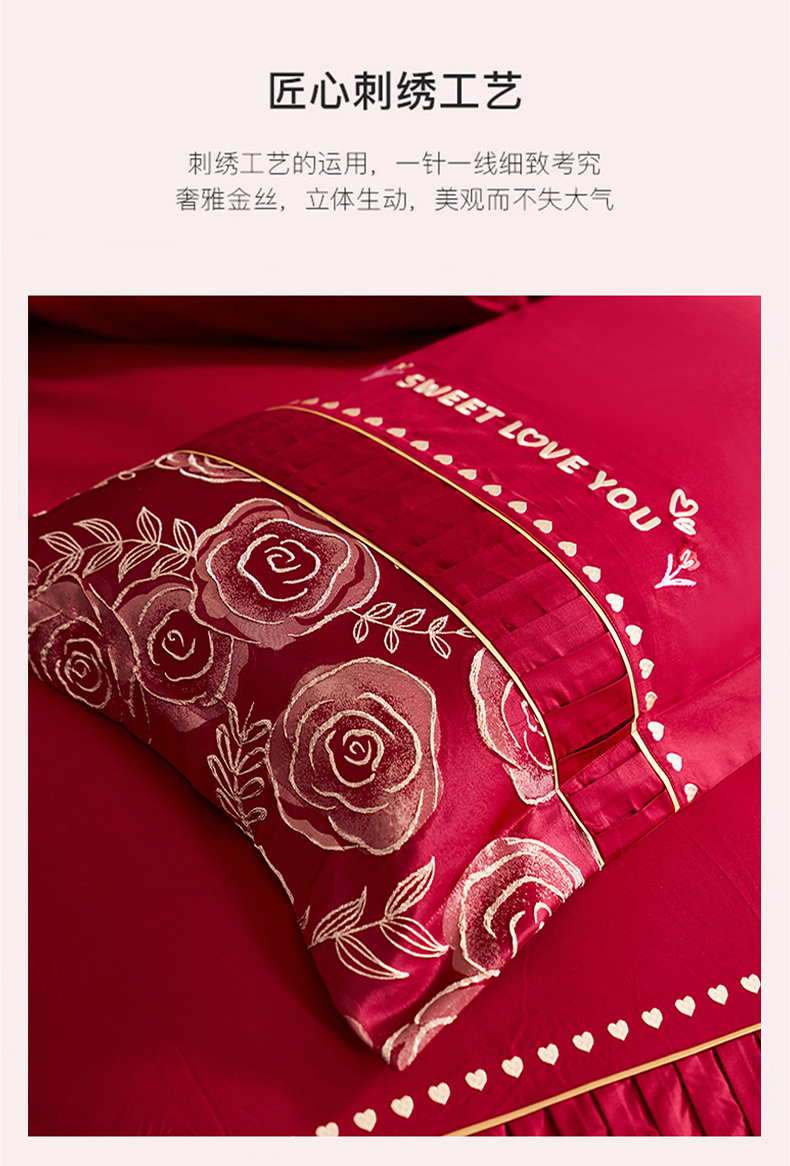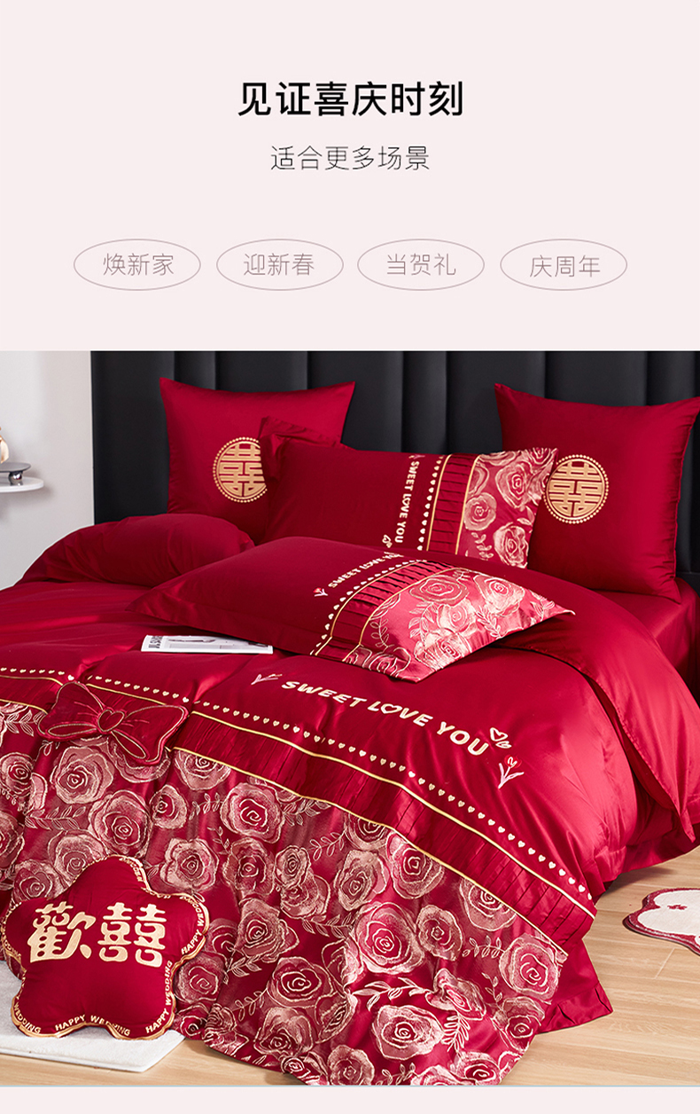 (总)甜咪咪婚庆 2025新款50支长绒棉全棉婚庆床单床盖四件套多件套刺绣工艺,洛可可,爱恋小熊,爱意久久,多子多福,花田喜事,节节高升,克拉恋人,浪漫情怀,怦然心动红,怦然心动玉,甜心玫瑰,温莎公主,伊甸园,醉红妆