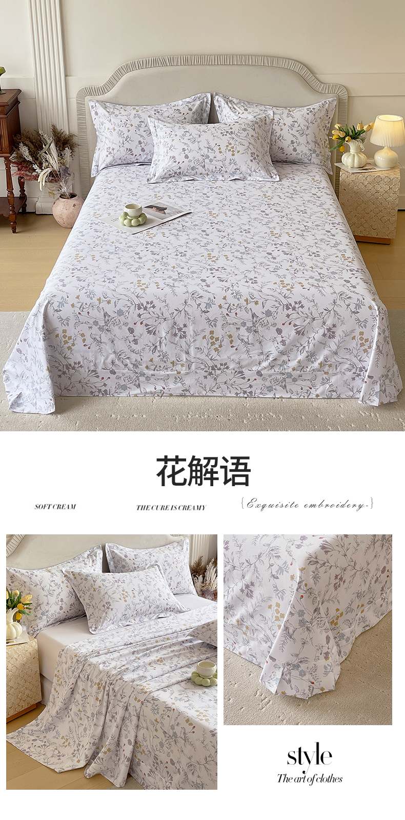 • 91家纺网 家纺一手货源 找家纺 宝齐莱家纺 2026新款全棉纯棉13372印花单床单床单单件 花解语