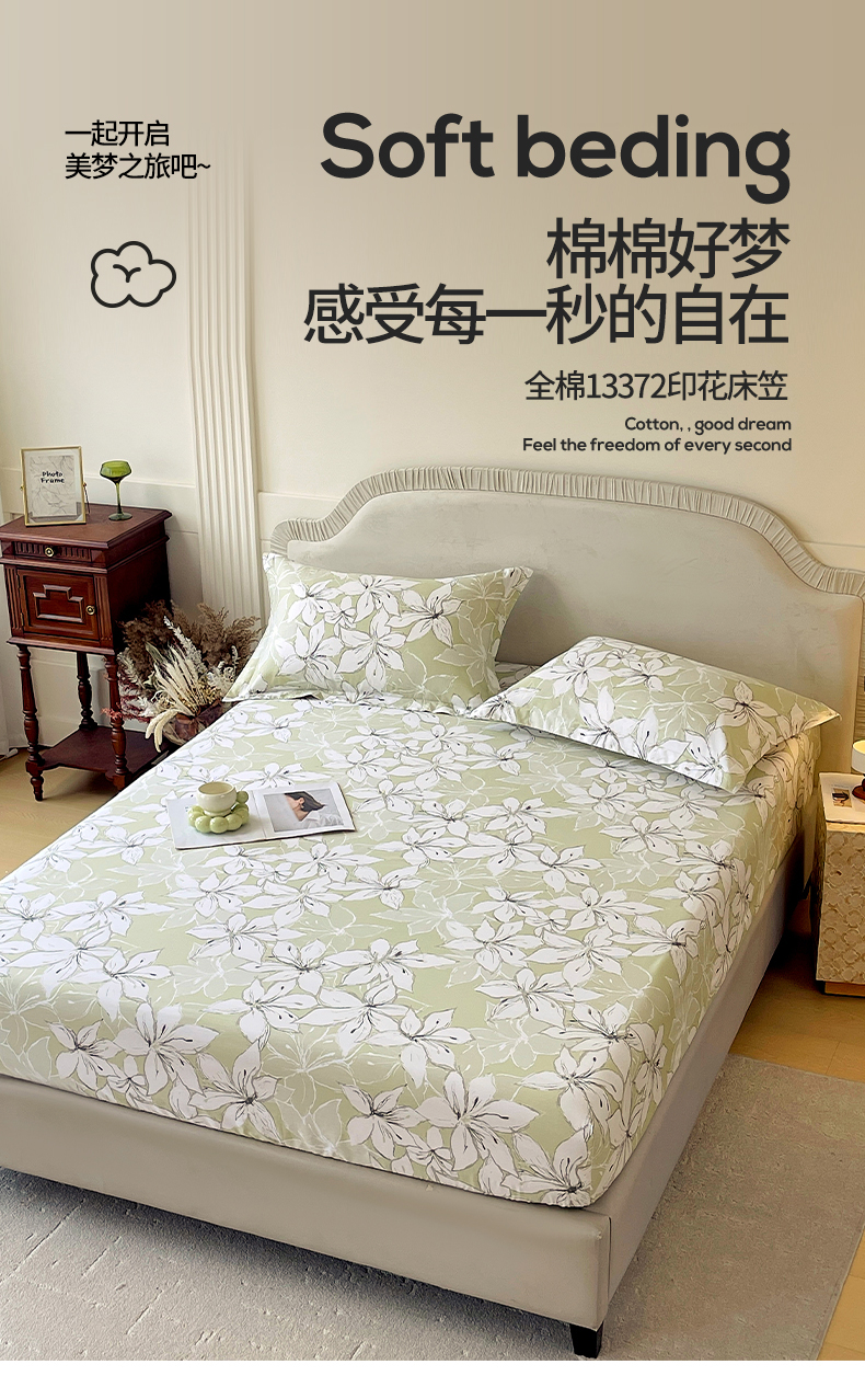 • 91家纺网 家纺一手货源 找家纺 (总)宝齐莱家纺 2026新款全棉纯棉13372印花单床笠床笠单件,浮光花影,花解语,洛可可,美如画,浅茉,清雅,午后花园,香榭丽,小确幸,烟花间,云间月,左岸晨雾