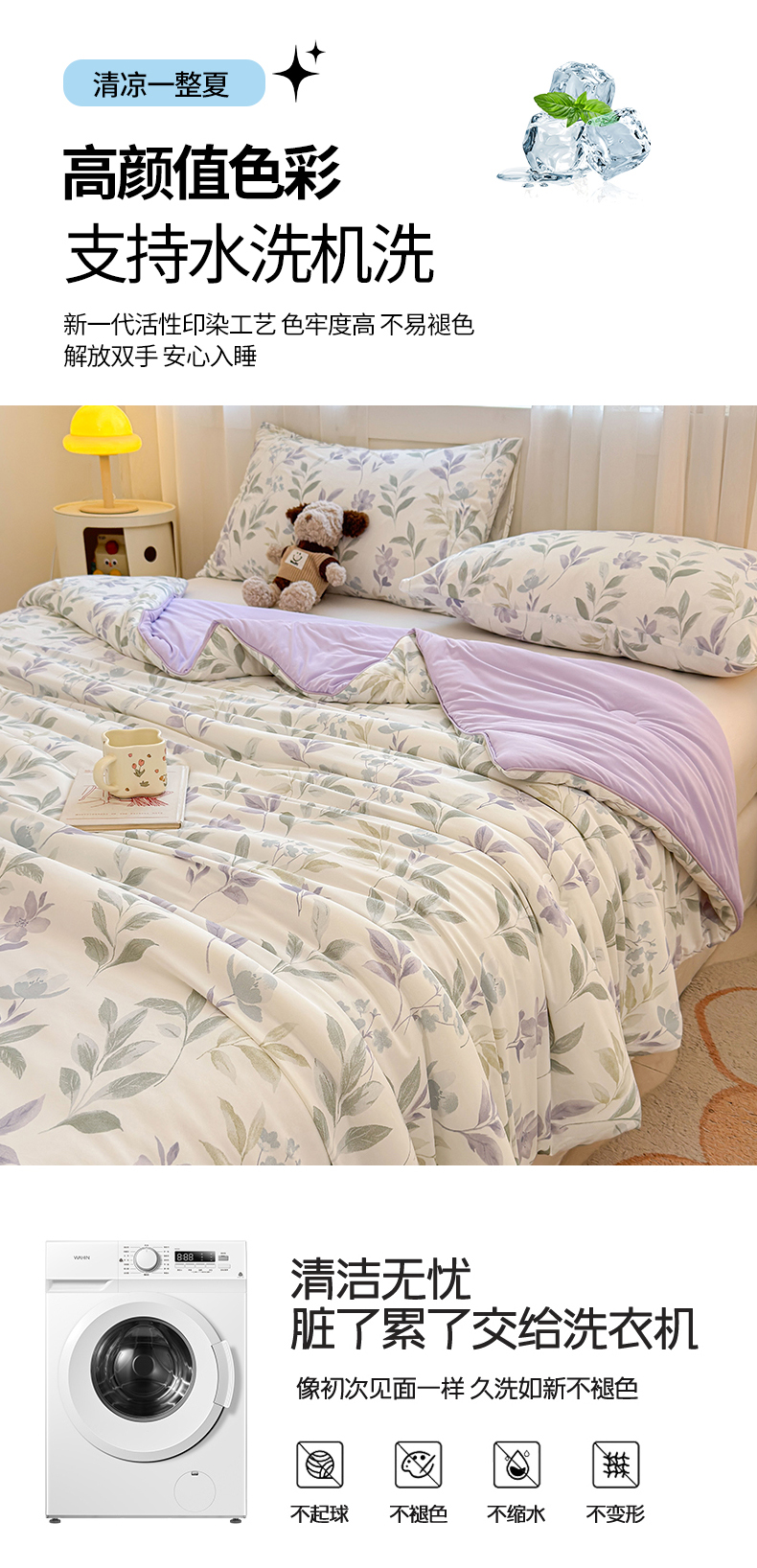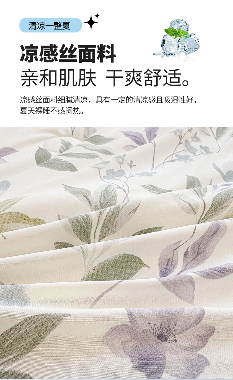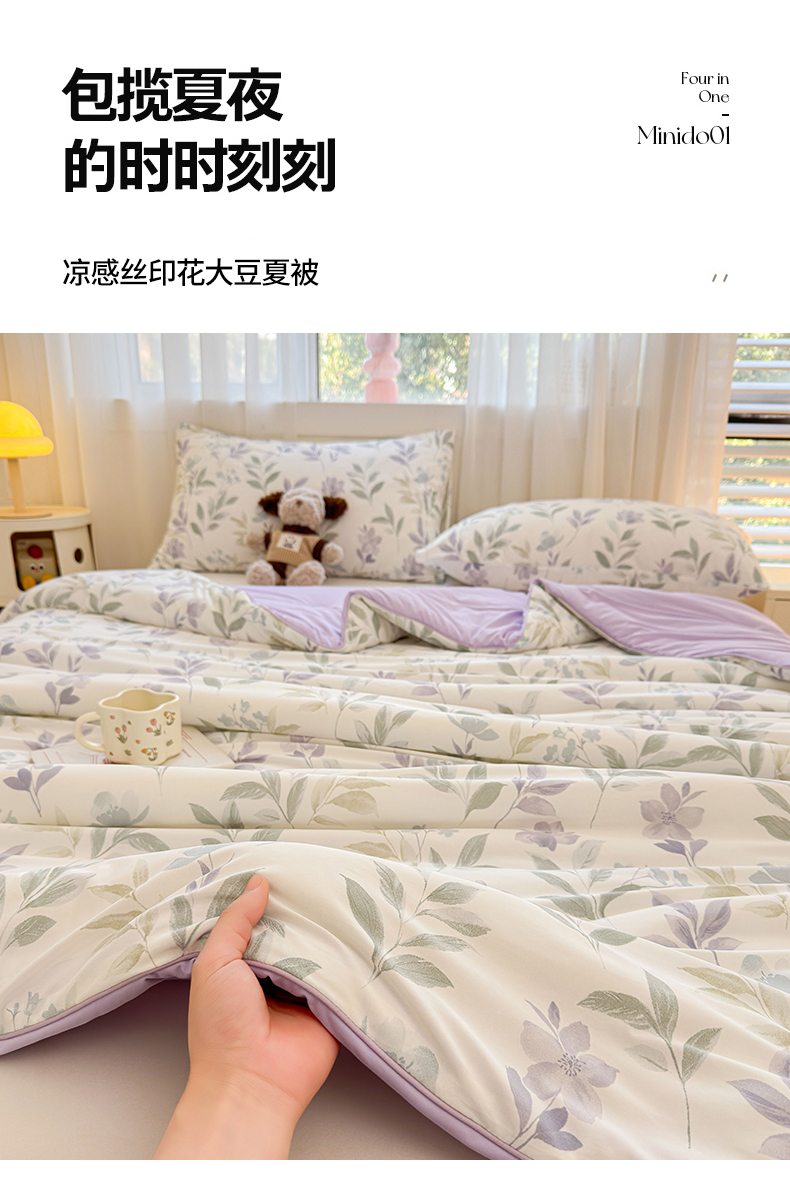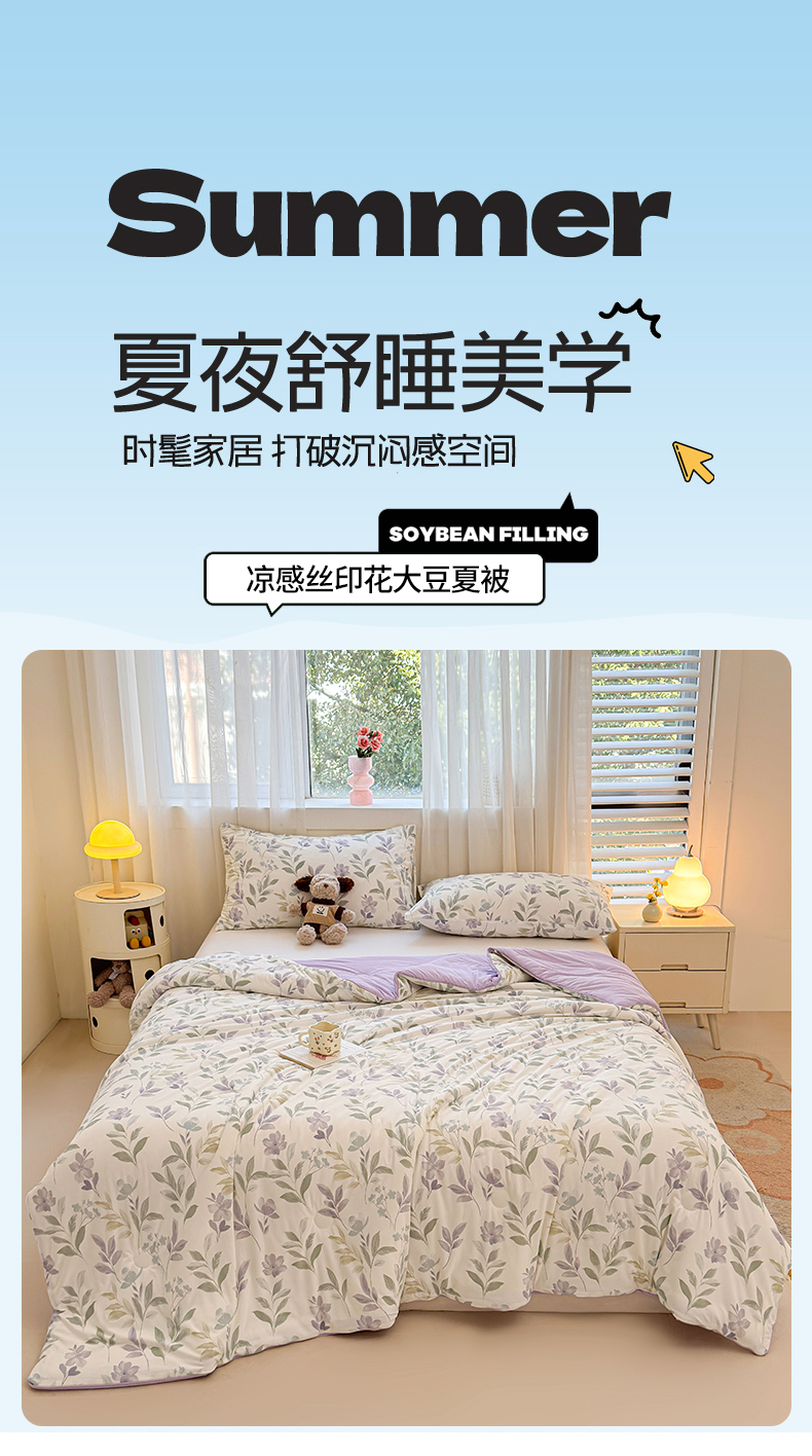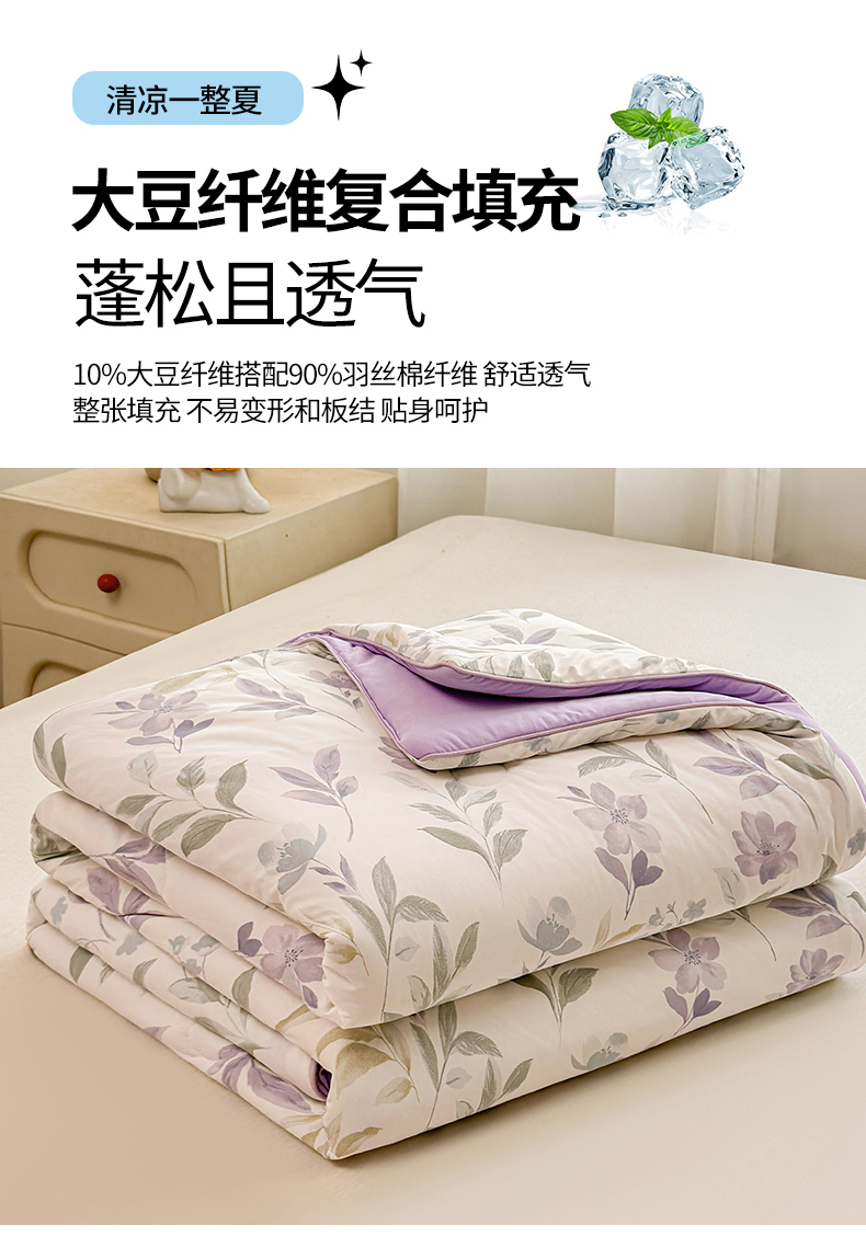 商品名称:景眠 2026新款凉感丝印花仿锦氨大豆夏被夏凉被空调被 叶柔苏夏