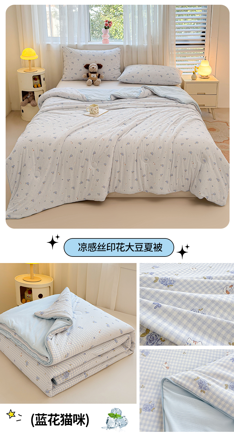 (总)景眠 2026新款凉感丝印花仿锦氨大豆夏被夏凉被空调被,欢快美食家,蓝花猫咪,乐园小狗,丽舍之梦,梦回浅浅,秘密花园,犬马之恋,甜心小熊,西瓜派,夏日铃兰,叶柔苏夏,樱桃兔