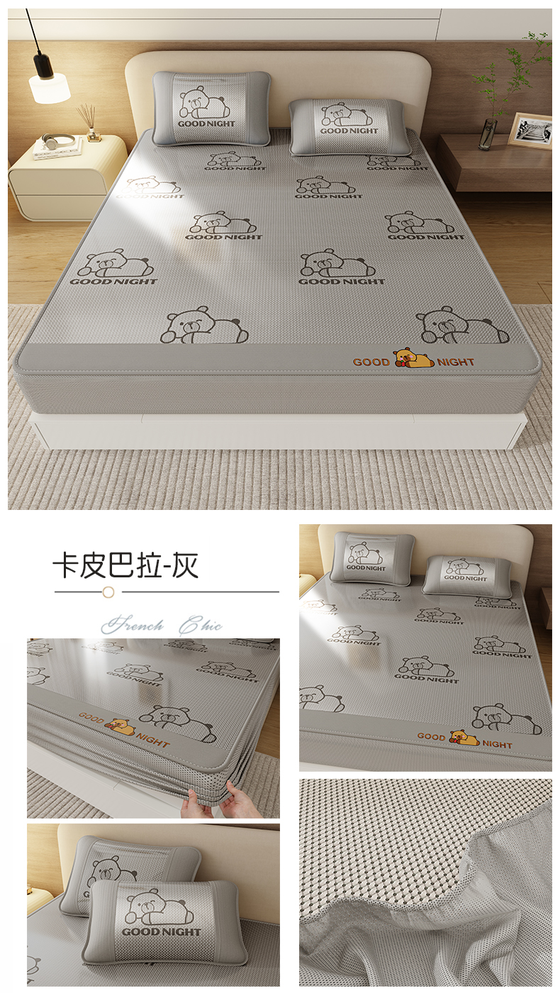 当前位置: 91家纺网 > 商品网购 > 床上用品 > 凉席 > 冰丝席 > 好福居 2026新款冰藤刺绣凉感席凉席-卡皮巴拉款-小熊款 冰藤卡皮巴拉-灰-床席款