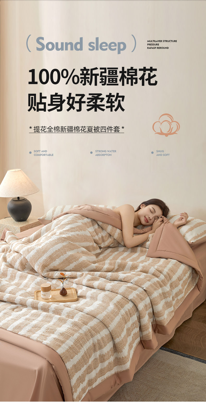 (总)吾秀家居 2026新款全棉纯棉大提花新疆棉花夏被夏凉被空调被四件套-律动,律动-奶咖,律动-浅灰,律动-深灰,律动-天兰