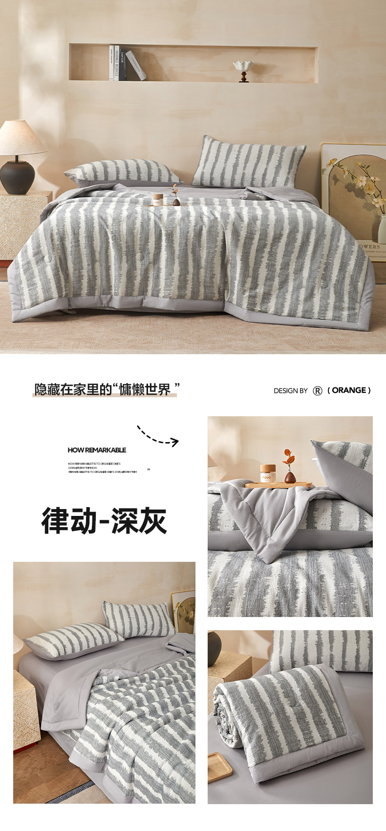 • 91家纺网 家纺一手货源 找家纺 吾秀家居 2026新款全棉纯棉大提花新疆棉花夏被夏凉被空调被四件套-律动 律动-浅灰