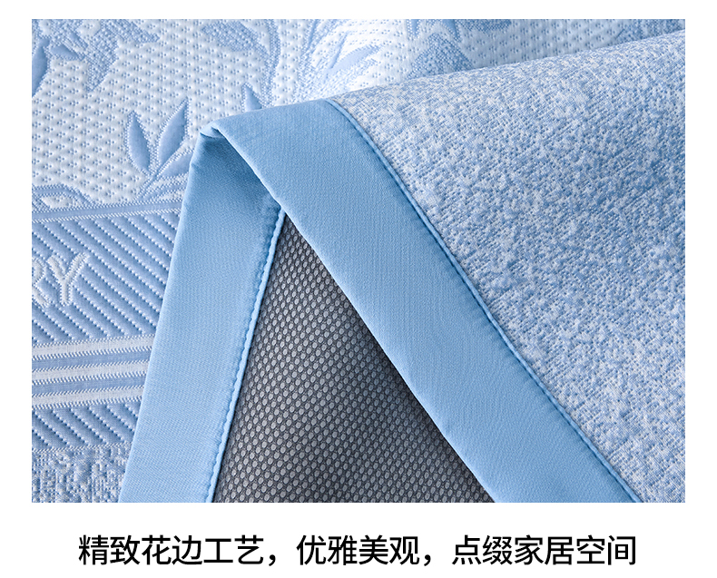 商品名称:宜派家纺 2026新款提花PE凉感冰丝席凉席席子三件套 风景-床笠蓝