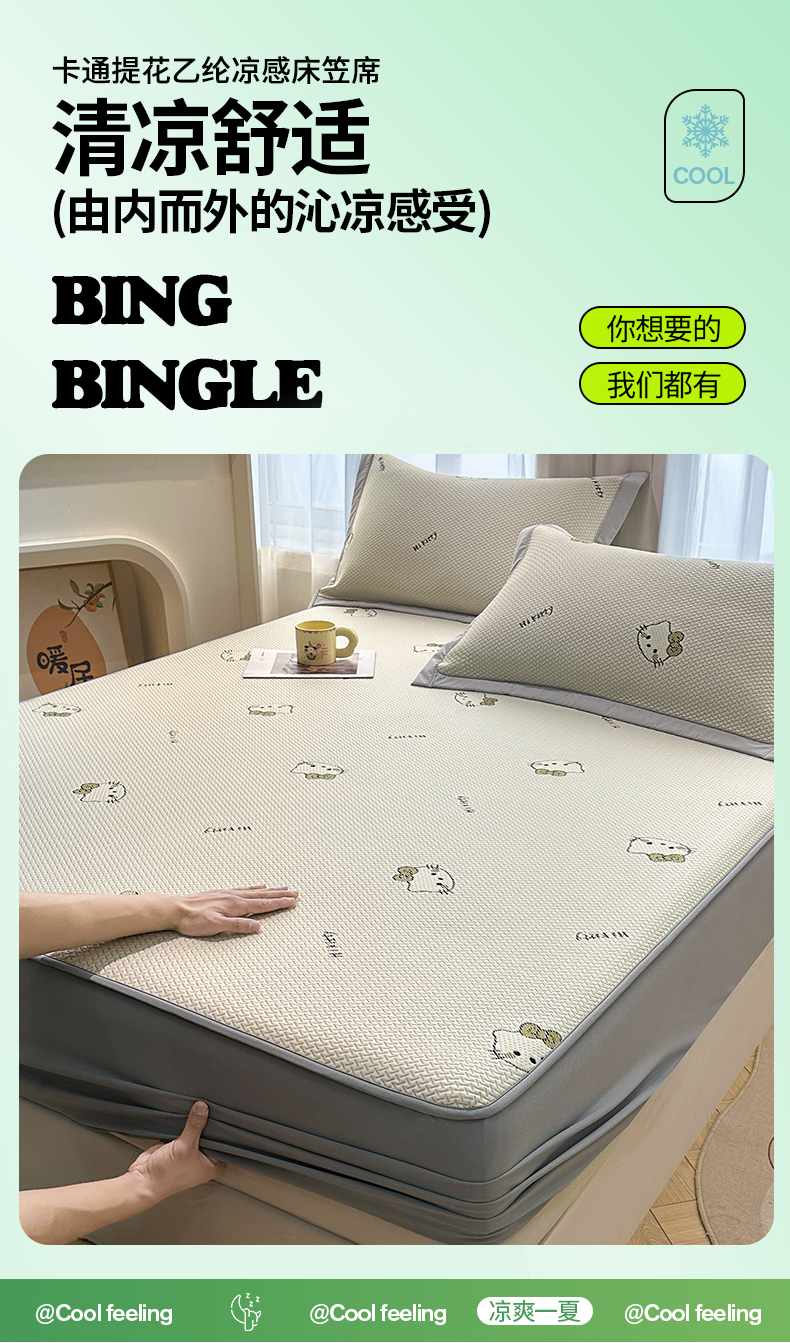 织雅漫 2026春夏新款卡通乙纶冰豆豆凉席席子-床笠款 梦境KT-床笠款