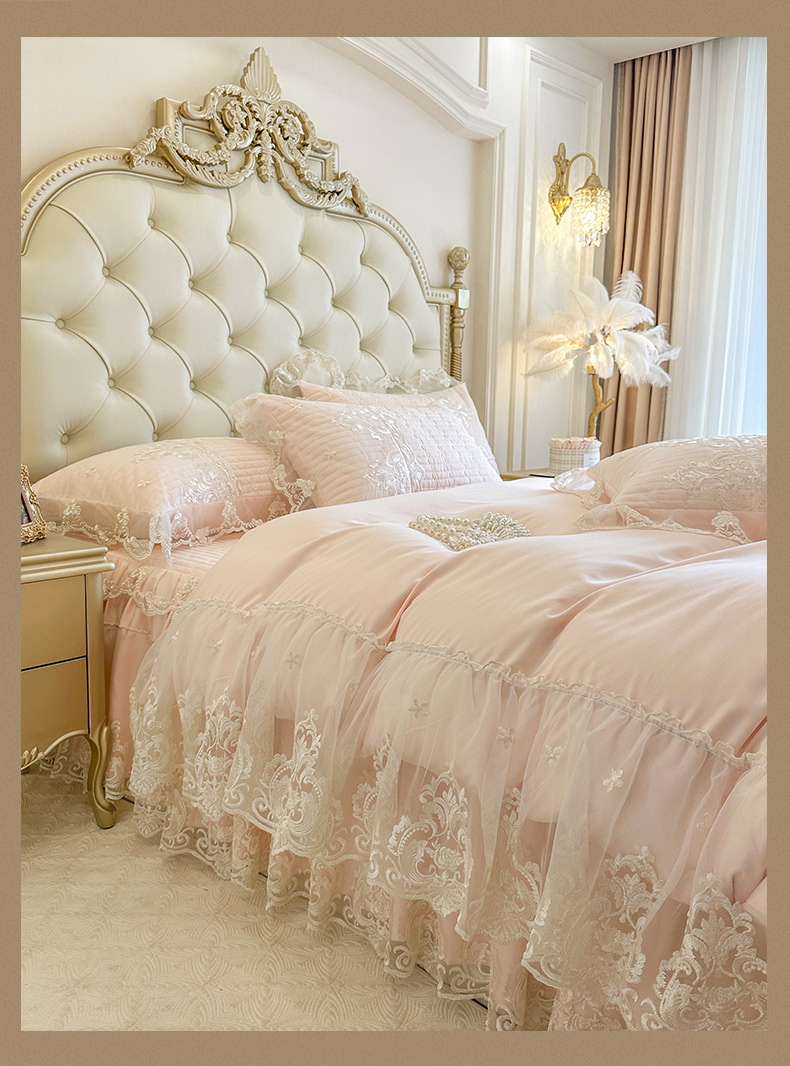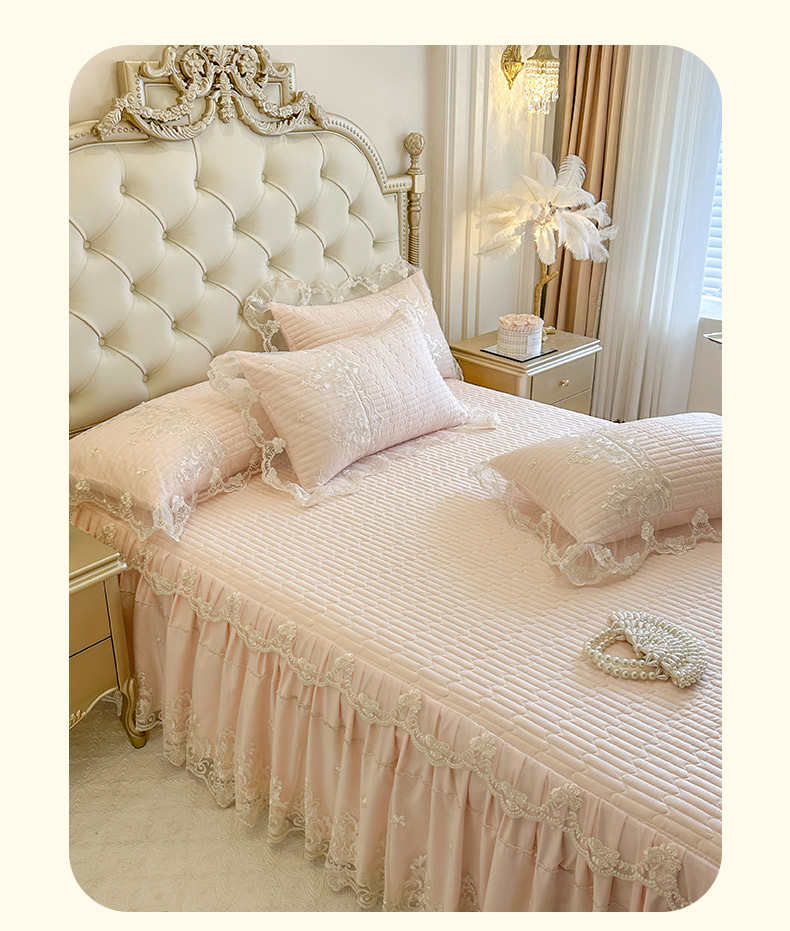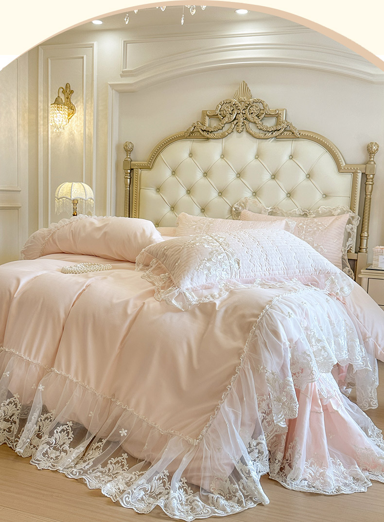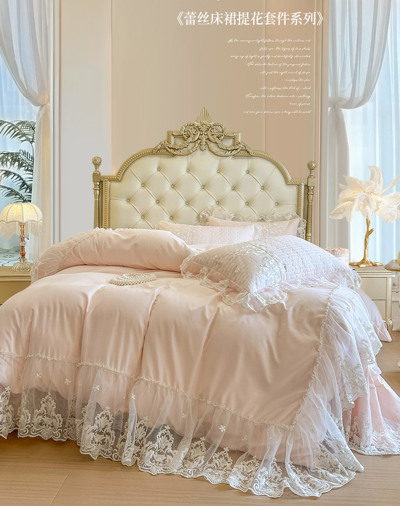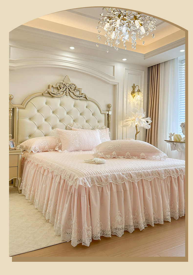 当前位置: 91家纺网 > 商品网购 > 床品套件 > 四件套 > 其它四件套 > 恋尚 2026新款提花蕾丝夹棉床裙四件套-安妮梦【控价床裙135起 床裙三件170起 四件270起】 安妮梦-清新粉