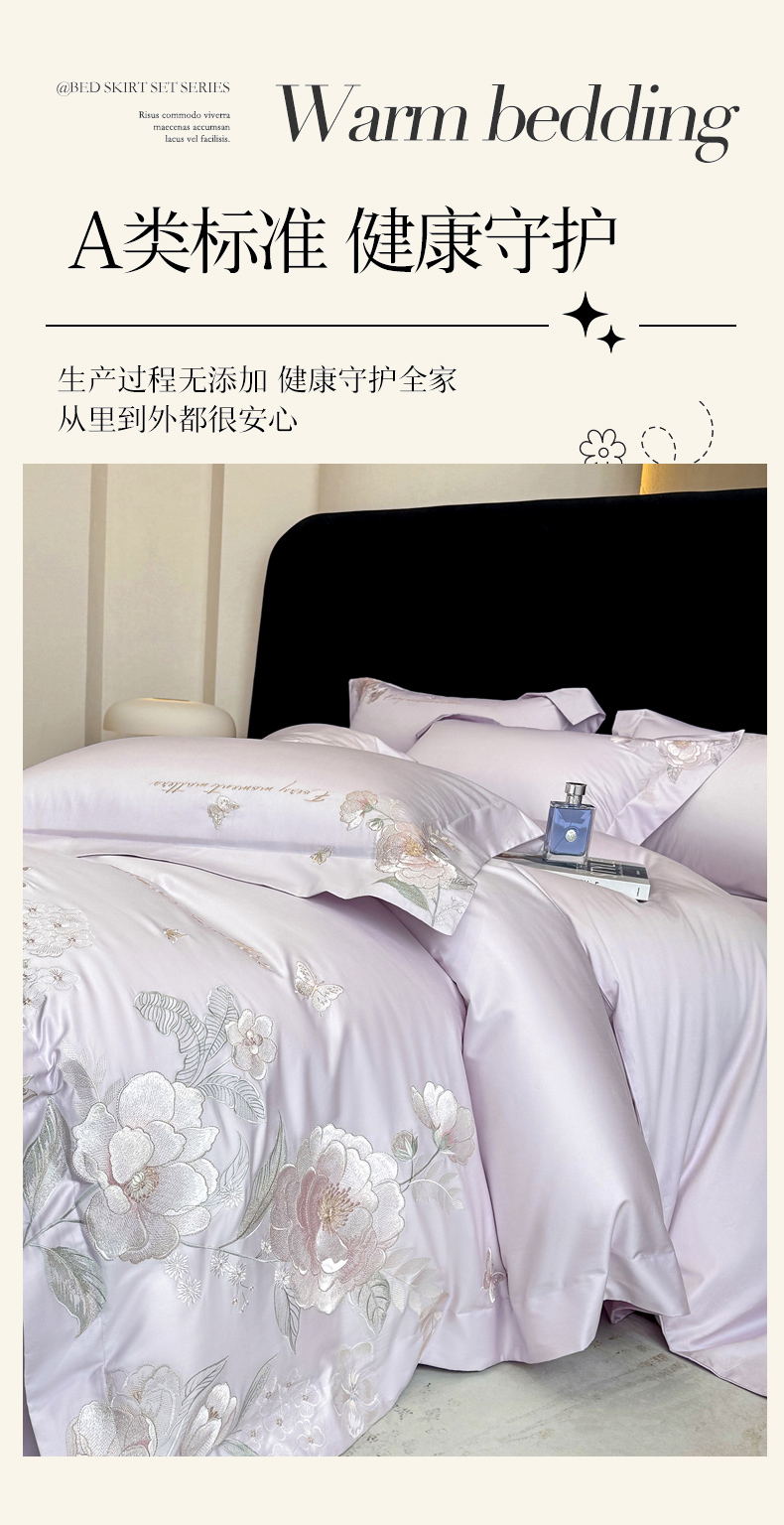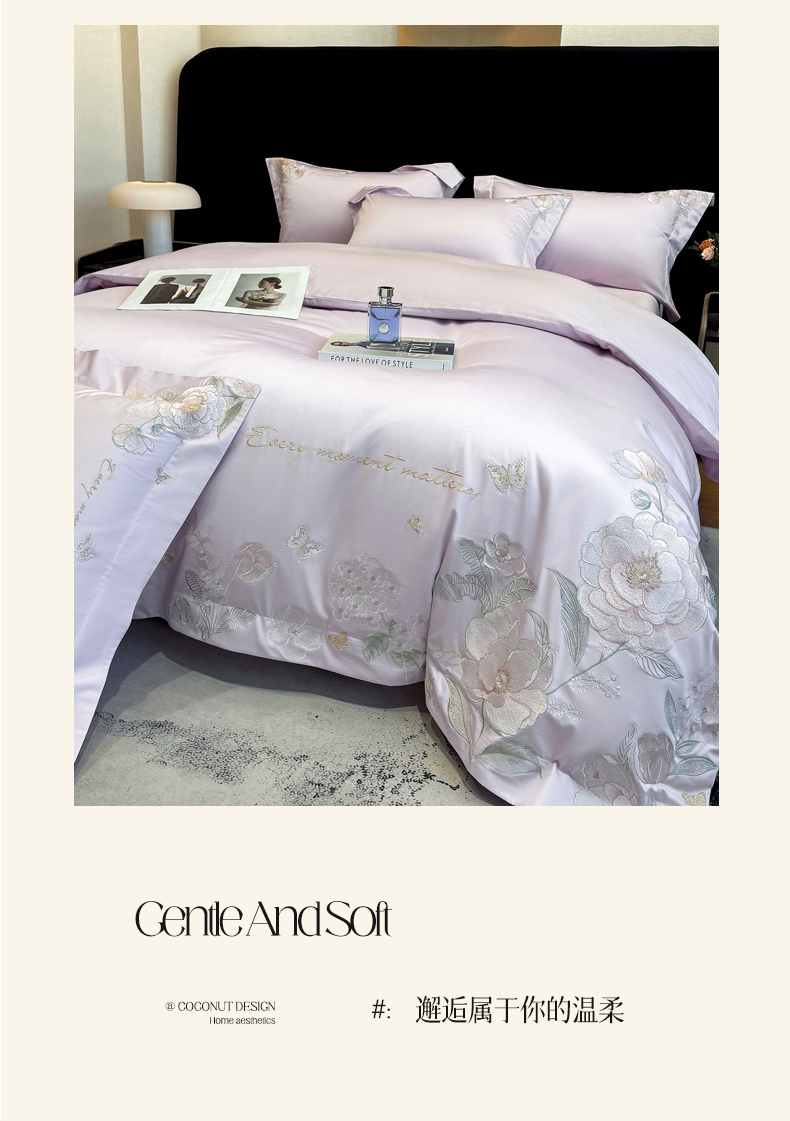 • 91家纺网 家纺一手货源 找家纺 (总)星蕴家纺 2026新款50贡缎长绒棉纯棉绣花四件套-花瑾,花瑾-邂逅粉,花瑾-晴山蓝,花瑾-梦幻紫,花瑾-清新绿