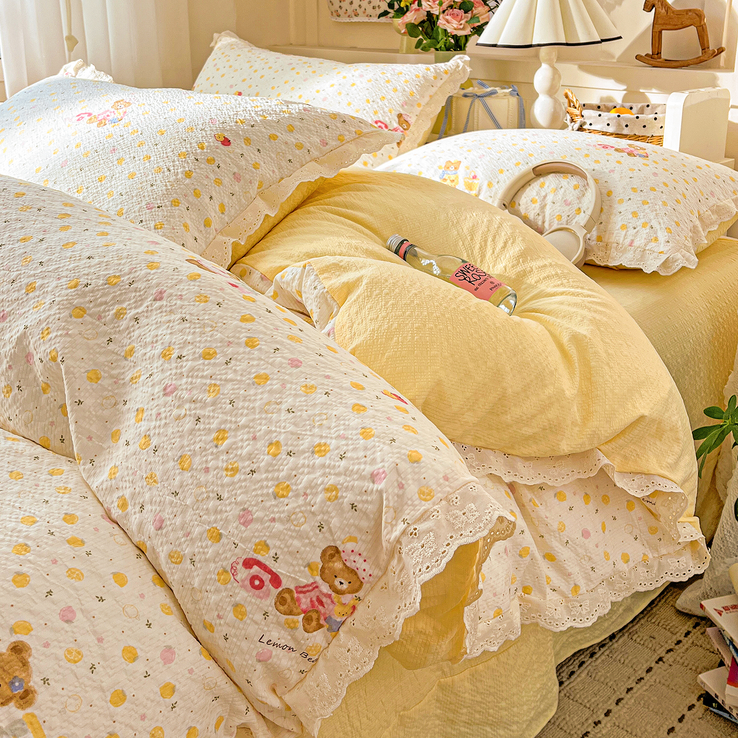 一比一家纺 2026新款泡芙纱花边四件套 小欢喜