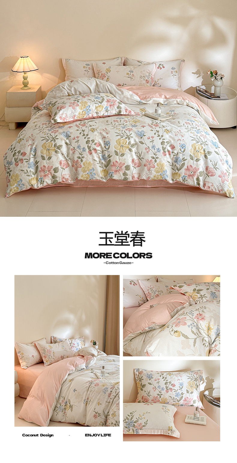 涵宸家纺 2026新款全棉印花花卉四件套 玉堂春