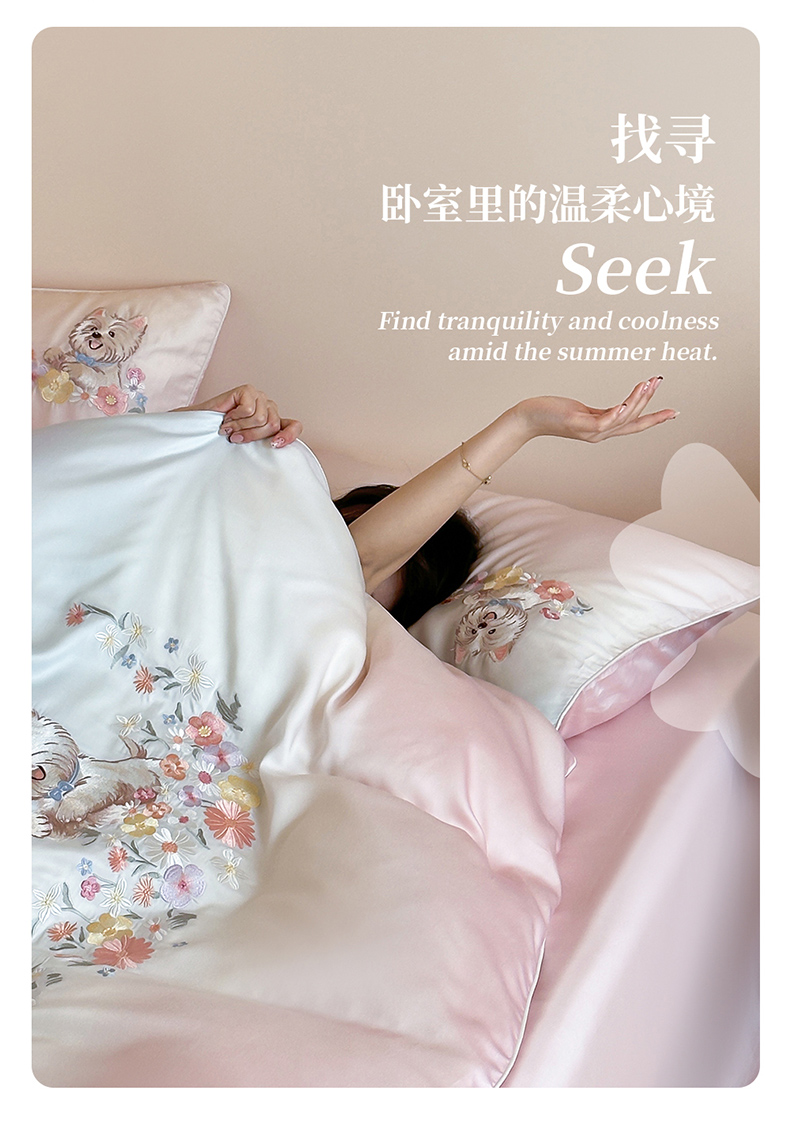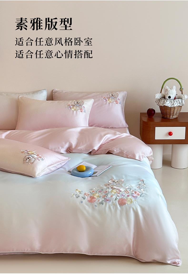 当前位置: 91家纺网 > 商品网购 > 床品套件 > 四件套 > 夏被四件套 > 爱缦 2026新款60支LF级奥地利兰精天丝夏被四件套-小雪的花园系列 小雪的花园四件套-粉
