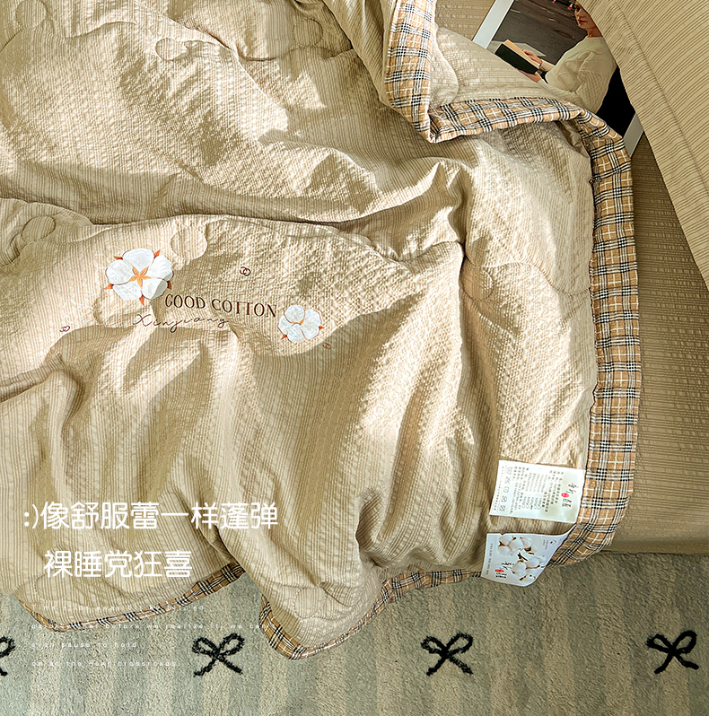 商品名称:优承佳生活馆 2026新款超柔泡芙棉烫画棉花夏被(提供买家秀) 泡芙-咖
