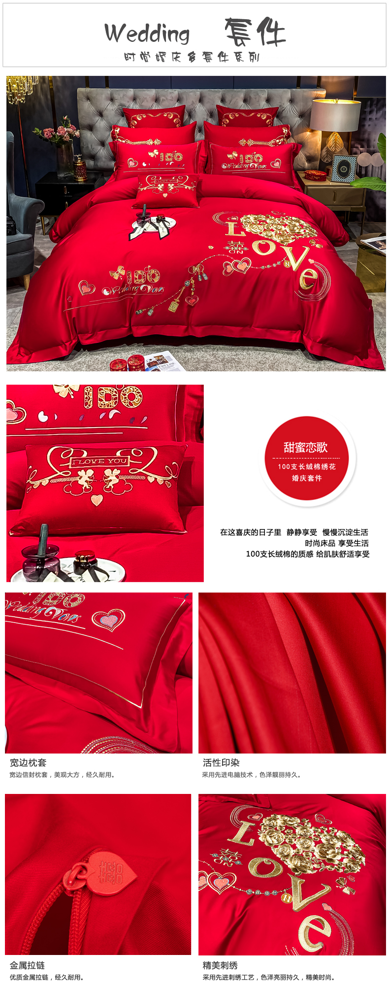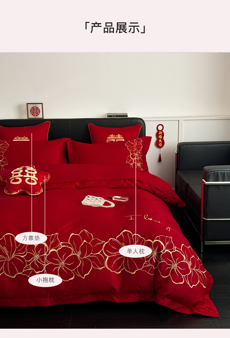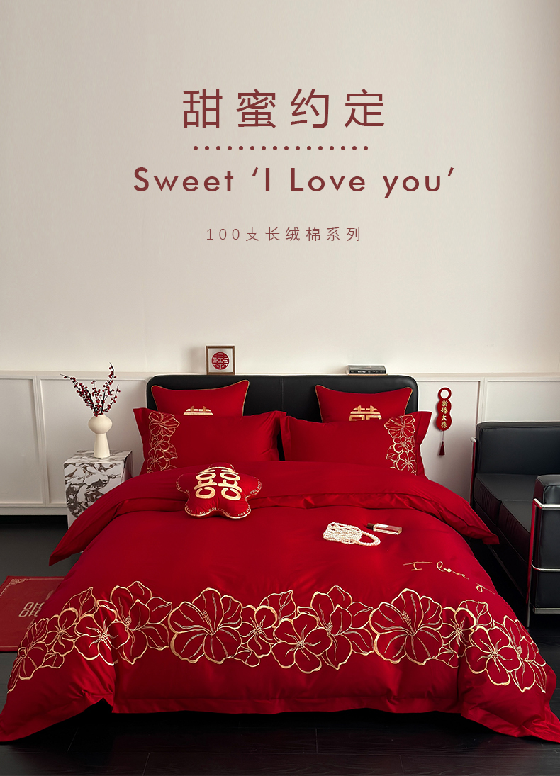 当前位置: 91家纺网 > 商品网购 > 床品套件 > 四件套 > 婚庆四件套 > 甜咪咪婚庆 2026新款长绒棉全棉绣花结婚婚庆四件套多件套床单床盖款 甜蜜约定