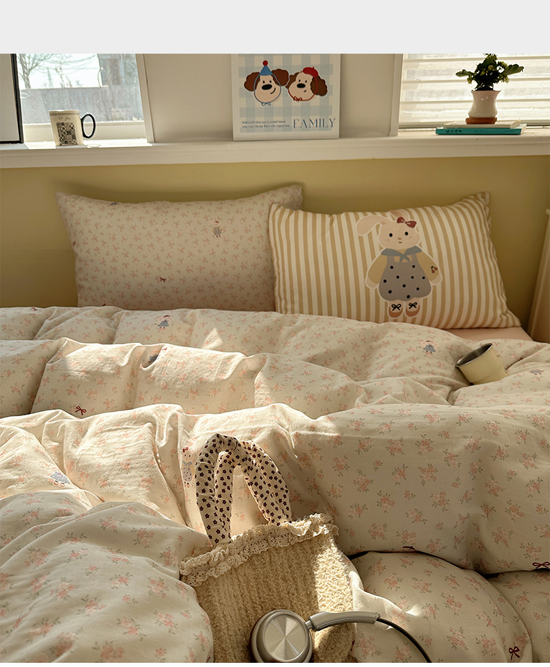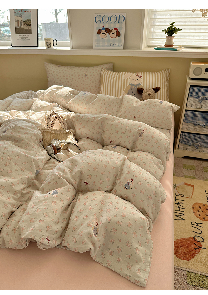 (总)耀悦家纺 2025新款a类13372小清新ins博主风纯棉四件套,林中小鹿,芸梦白芍,饼干日记,初晴,菲菲兔,樱桃日记,陌上花语,奶酪日记,兔兔星愿